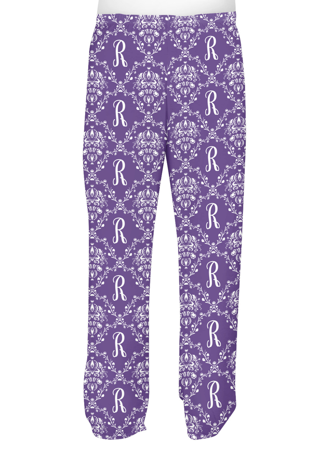 A touch of elegance at its best. The white Damask pattern pops against the backdrop of this rich purple. Personalized with your initial adds that touch of pride to the design. A wide band of purple and white break up the design to make it pleasing to the eye.
