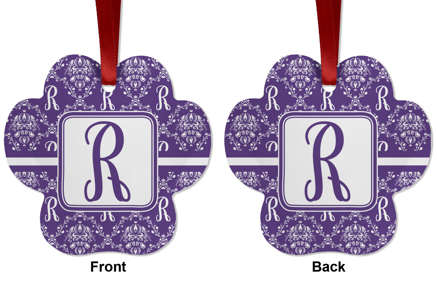 A touch of elegance at its best. The white Damask pattern pops against the backdrop of this rich purple. Personalized with your initial adds that touch of pride to the design. A wide band of purple and white break up the design to make it pleasing to the eye.