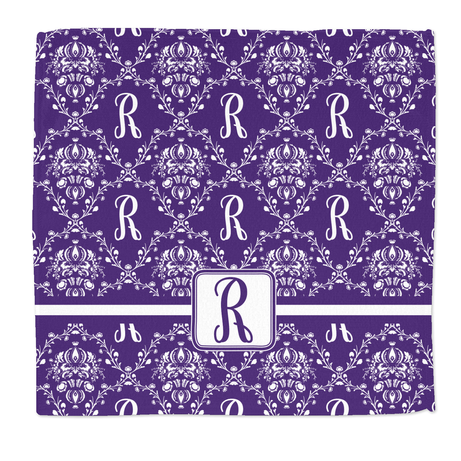 A touch of elegance at its best. The white Damask pattern pops against the backdrop of this rich purple. Personalized with your initial adds that touch of pride to the design. A wide band of purple and white break up the design to make it pleasing to the eye.