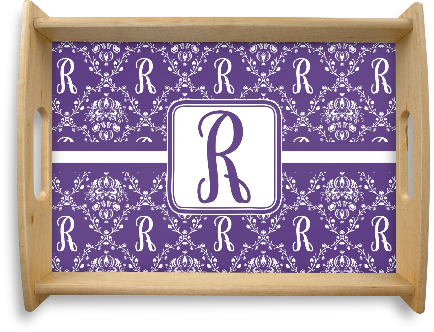 A touch of elegance at its best. The white Damask pattern pops against the backdrop of this rich purple. Personalized with your initial adds that touch of pride to the design. A wide band of purple and white break up the design to make it pleasing to the eye.