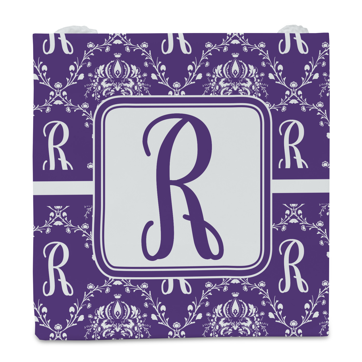 A touch of elegance at its best. The white Damask pattern pops against the backdrop of this rich purple. Personalized with your initial adds that touch of pride to the design. A wide band of purple and white break up the design to make it pleasing to the eye.