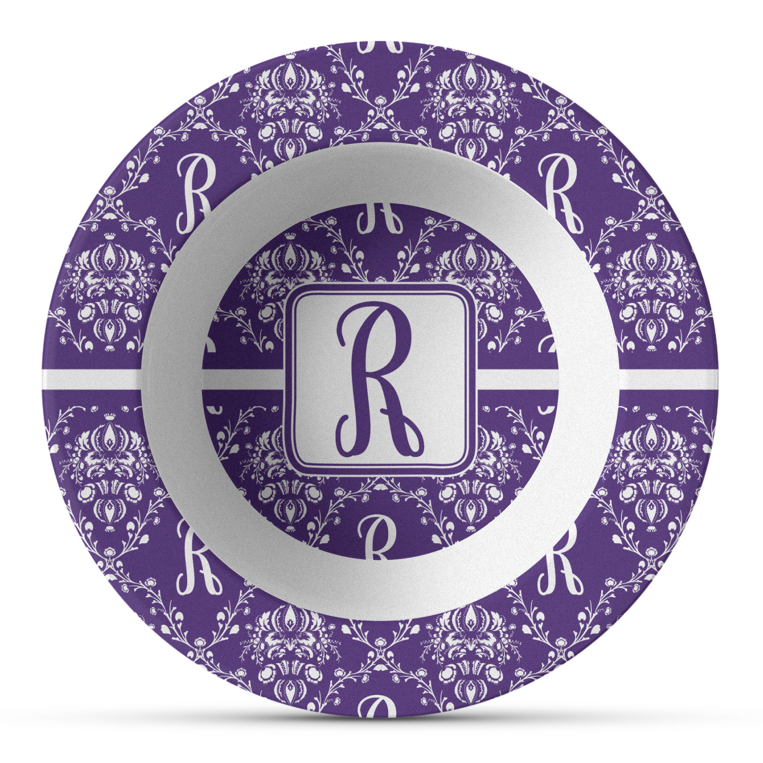 A touch of elegance at its best. The white Damask pattern pops against the backdrop of this rich purple. Personalized with your initial adds that touch of pride to the design. A wide band of purple and white break up the design to make it pleasing to the eye.