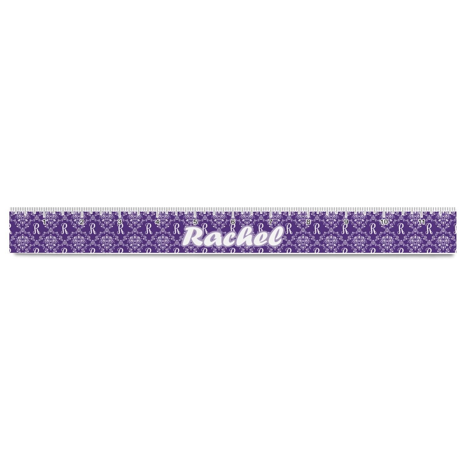 A touch of elegance at its best. The white Damask pattern pops against the backdrop of this rich purple. Personalized with your initial adds that touch of pride to the design. A wide band of purple and white break up the design to make it pleasing to the eye.