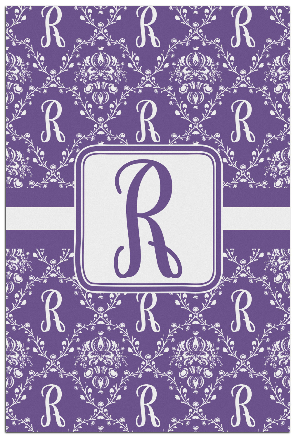 A touch of elegance at its best. The white Damask pattern pops against the backdrop of this rich purple. Personalized with your initial adds that touch of pride to the design. A wide band of purple and white break up the design to make it pleasing to the eye.