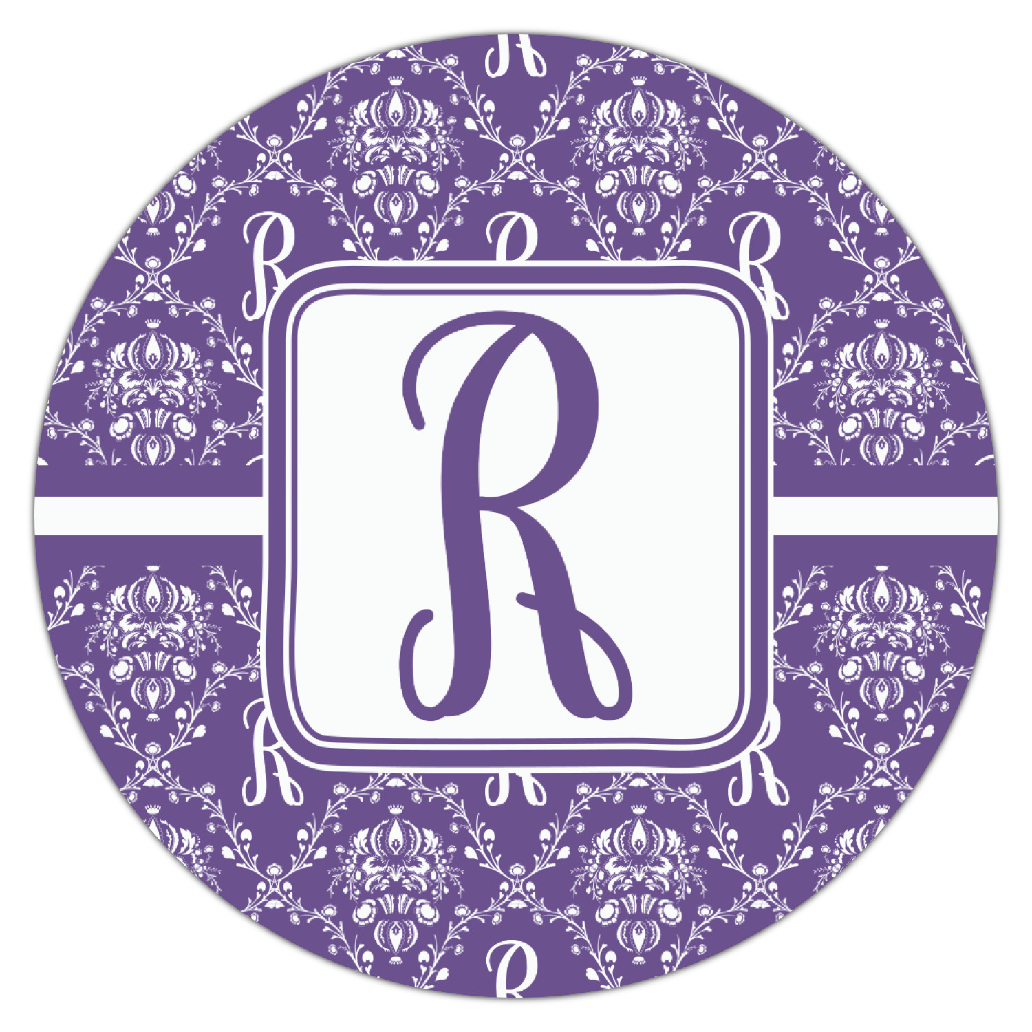 A touch of elegance at its best. The white Damask pattern pops against the backdrop of this rich purple. Personalized with your initial adds that touch of pride to the design. A wide band of purple and white break up the design to make it pleasing to the eye.