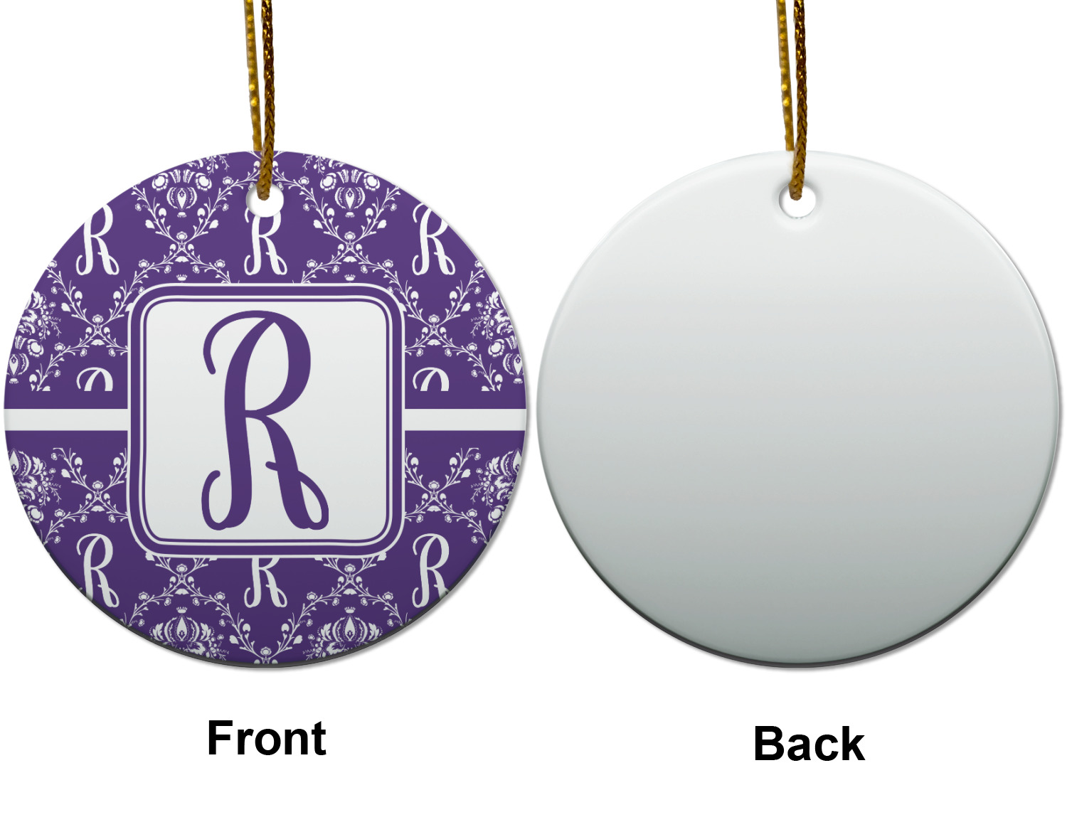 A touch of elegance at its best. The white Damask pattern pops against the backdrop of this rich purple. Personalized with your initial adds that touch of pride to the design. A wide band of purple and white break up the design to make it pleasing to the eye.