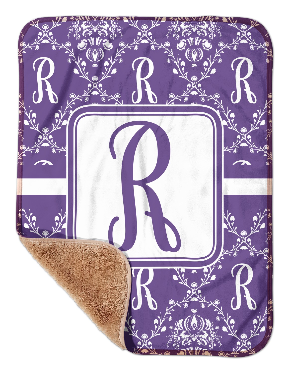 A touch of elegance at its best. The white Damask pattern pops against the backdrop of this rich purple. Personalized with your initial adds that touch of pride to the design. A wide band of purple and white break up the design to make it pleasing to the eye.