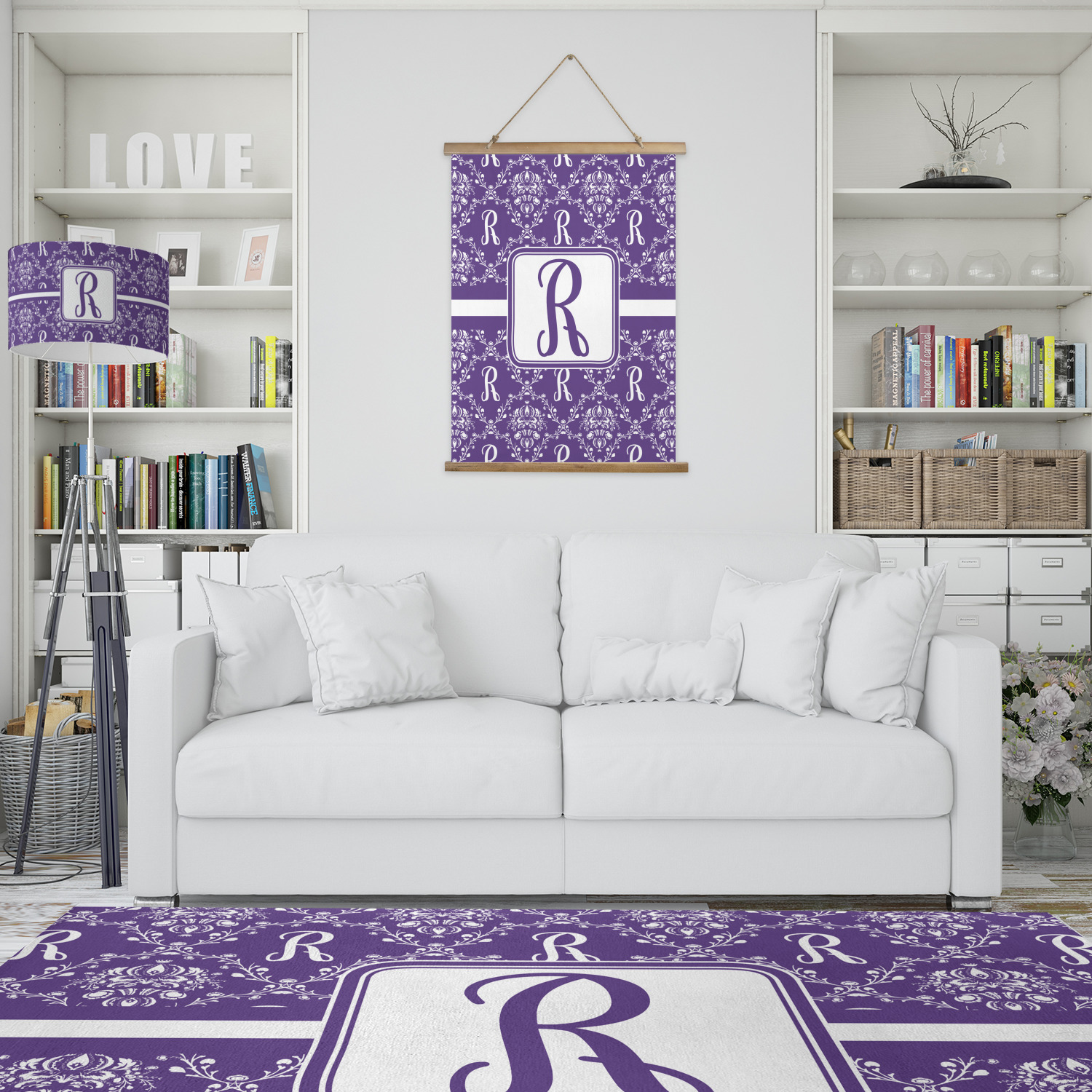 A touch of elegance at its best. The white Damask pattern pops against the backdrop of this rich purple. Personalized with your initial adds that touch of pride to the design. A wide band of purple and white break up the design to make it pleasing to the eye.