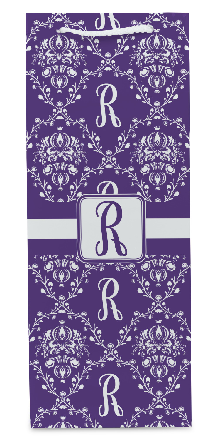 A touch of elegance at its best. The white Damask pattern pops against the backdrop of this rich purple. Personalized with your initial adds that touch of pride to the design. A wide band of purple and white break up the design to make it pleasing to the eye.