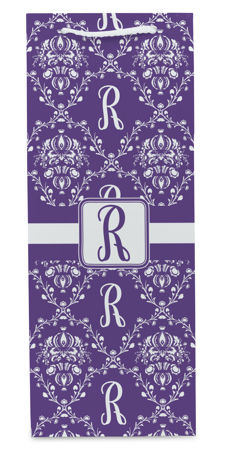 A touch of elegance at its best. The white Damask pattern pops against the backdrop of this rich purple. Personalized with your initial adds that touch of pride to the design. A wide band of purple and white break up the design to make it pleasing to the eye.