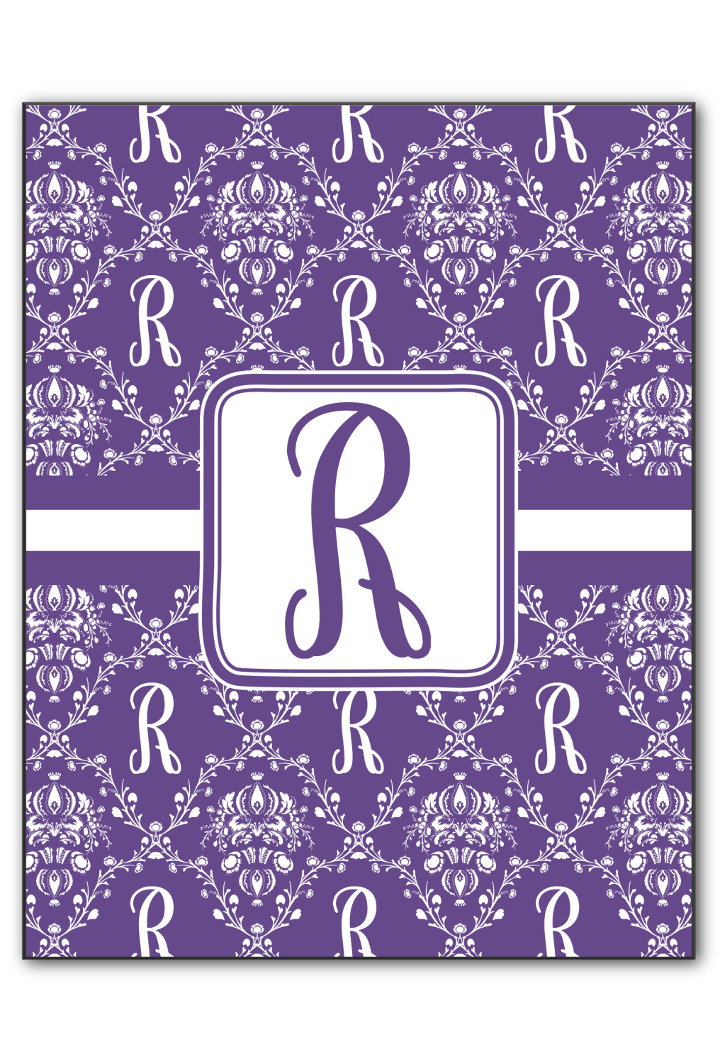 A touch of elegance at its best. The white Damask pattern pops against the backdrop of this rich purple. Personalized with your initial adds that touch of pride to the design. A wide band of purple and white break up the design to make it pleasing to the eye.