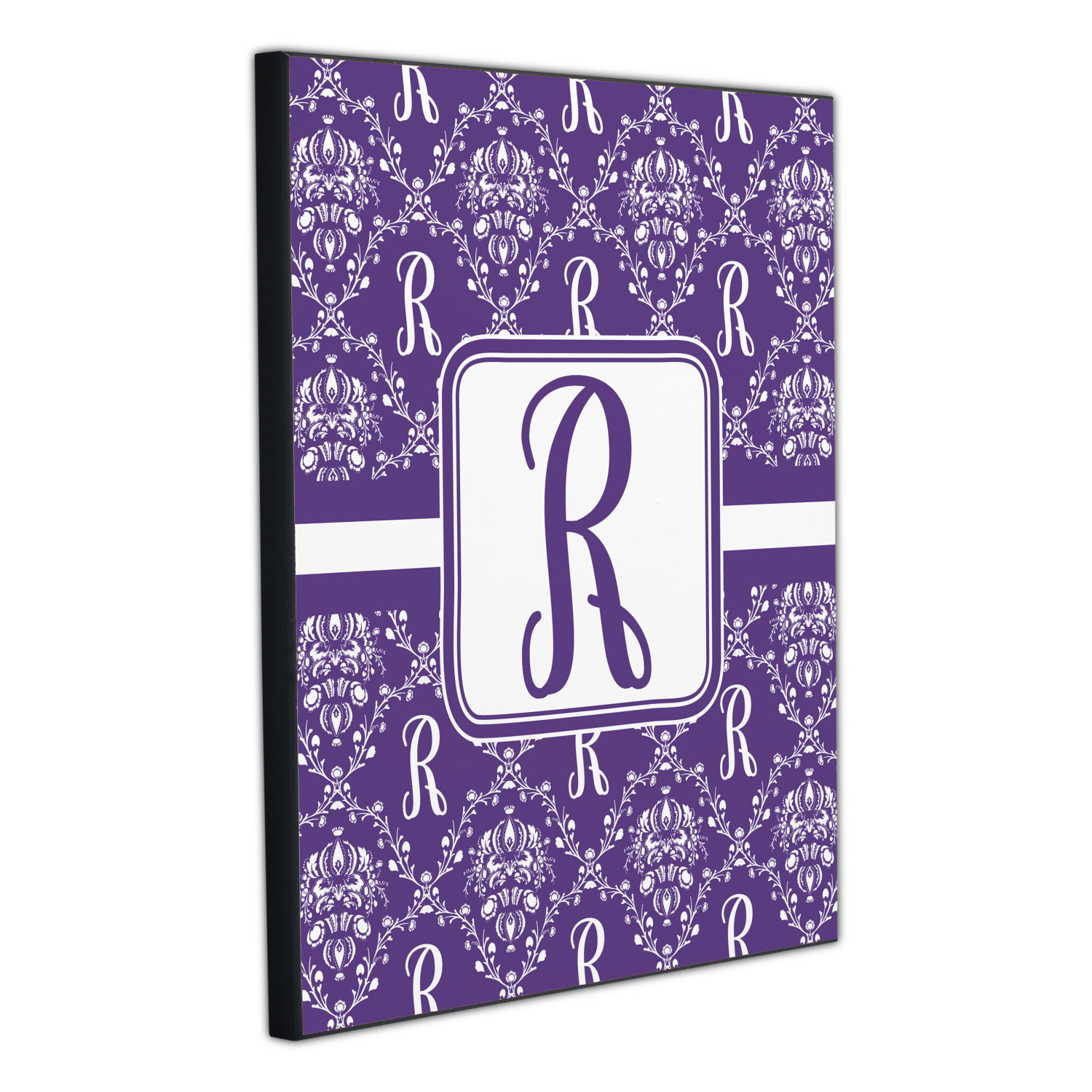 A touch of elegance at its best. The white Damask pattern pops against the backdrop of this rich purple. Personalized with your initial adds that touch of pride to the design. A wide band of purple and white break up the design to make it pleasing to the eye.