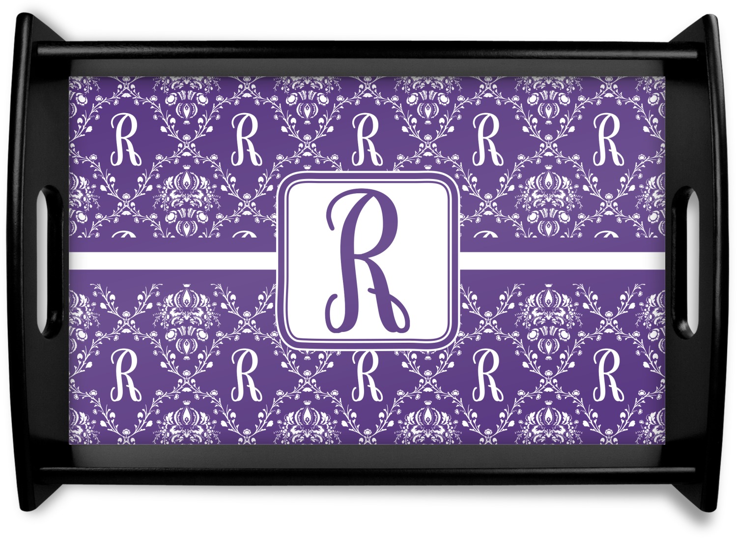 A touch of elegance at its best. The white Damask pattern pops against the backdrop of this rich purple. Personalized with your initial adds that touch of pride to the design. A wide band of purple and white break up the design to make it pleasing to the eye.