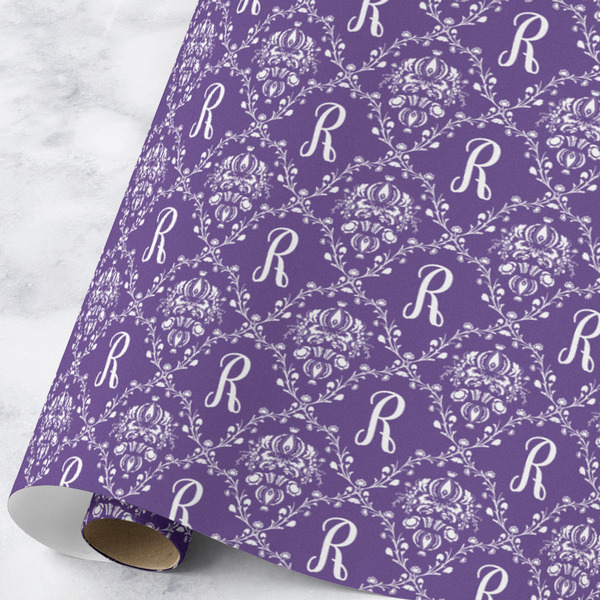 A touch of elegance at its best. The white Damask pattern pops against the backdrop of this rich purple. Personalized with your initial adds that touch of pride to the design. A wide band of purple and white break up the design to make it pleasing to the eye.