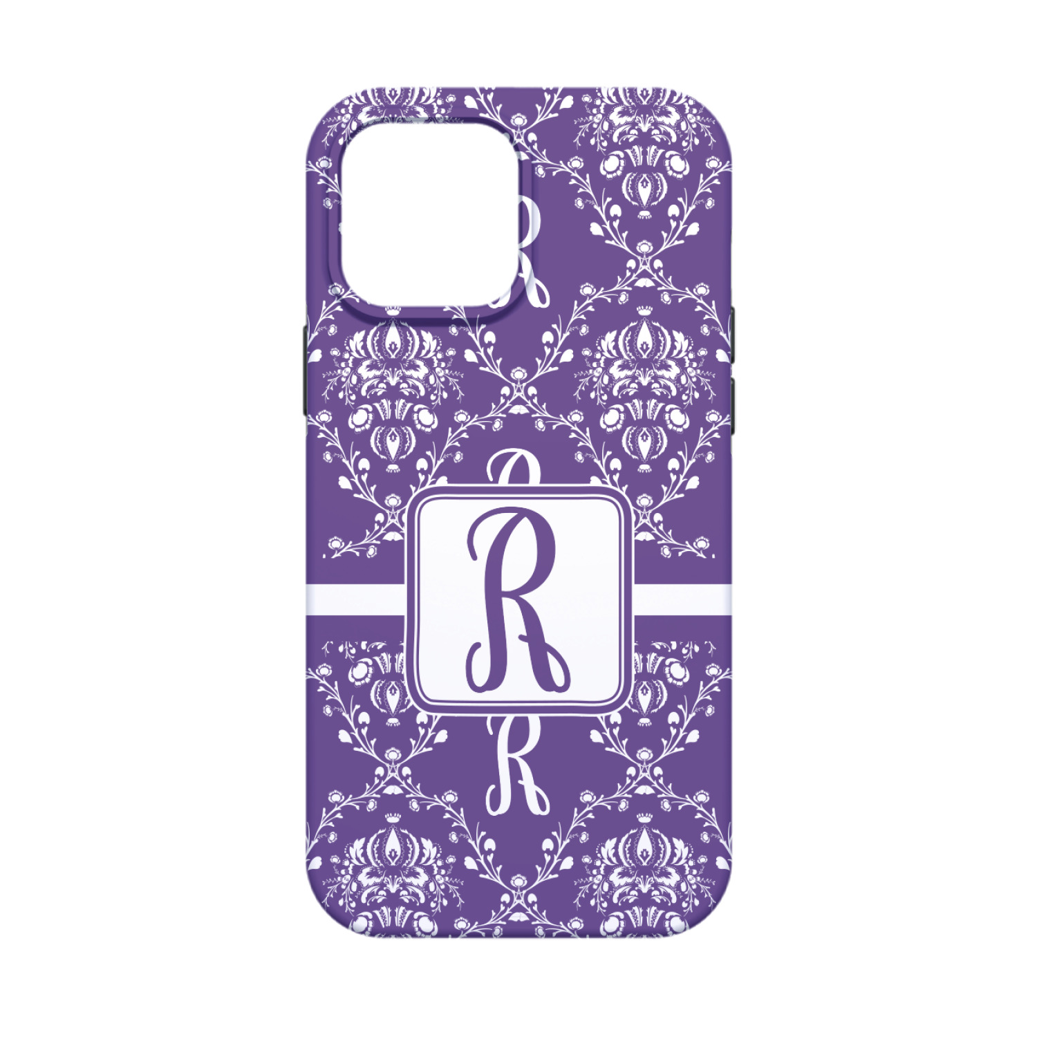 A touch of elegance at its best. The white Damask pattern pops against the backdrop of this rich purple. Personalized with your initial adds that touch of pride to the design. A wide band of purple and white break up the design to make it pleasing to the eye.