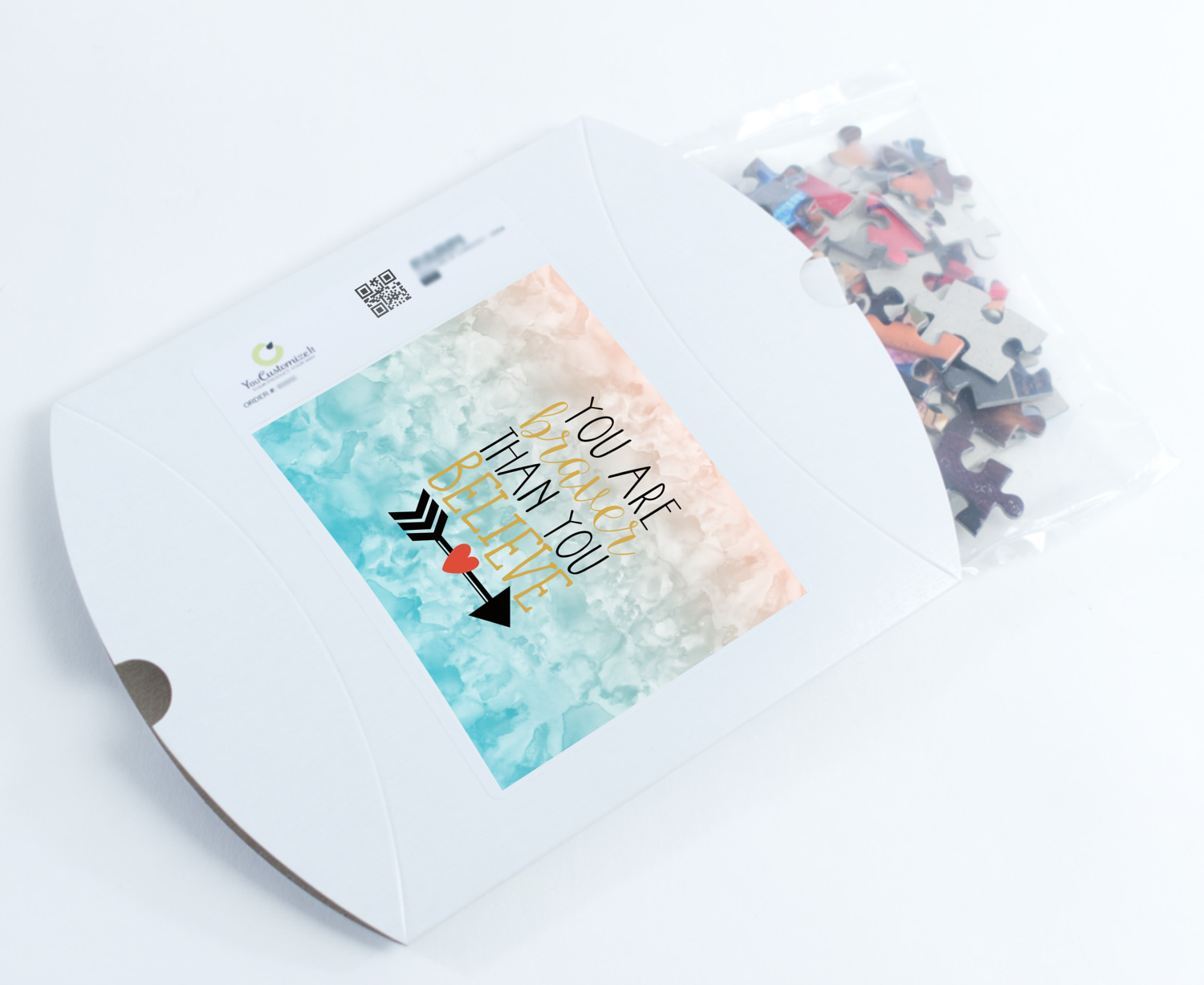 You can also upload your logo or art that you or your kids drew. To create more challenging jigsaw puzzles, you can create a pattern from with your logo or artwork. You can also add other elements such as text or personalization.