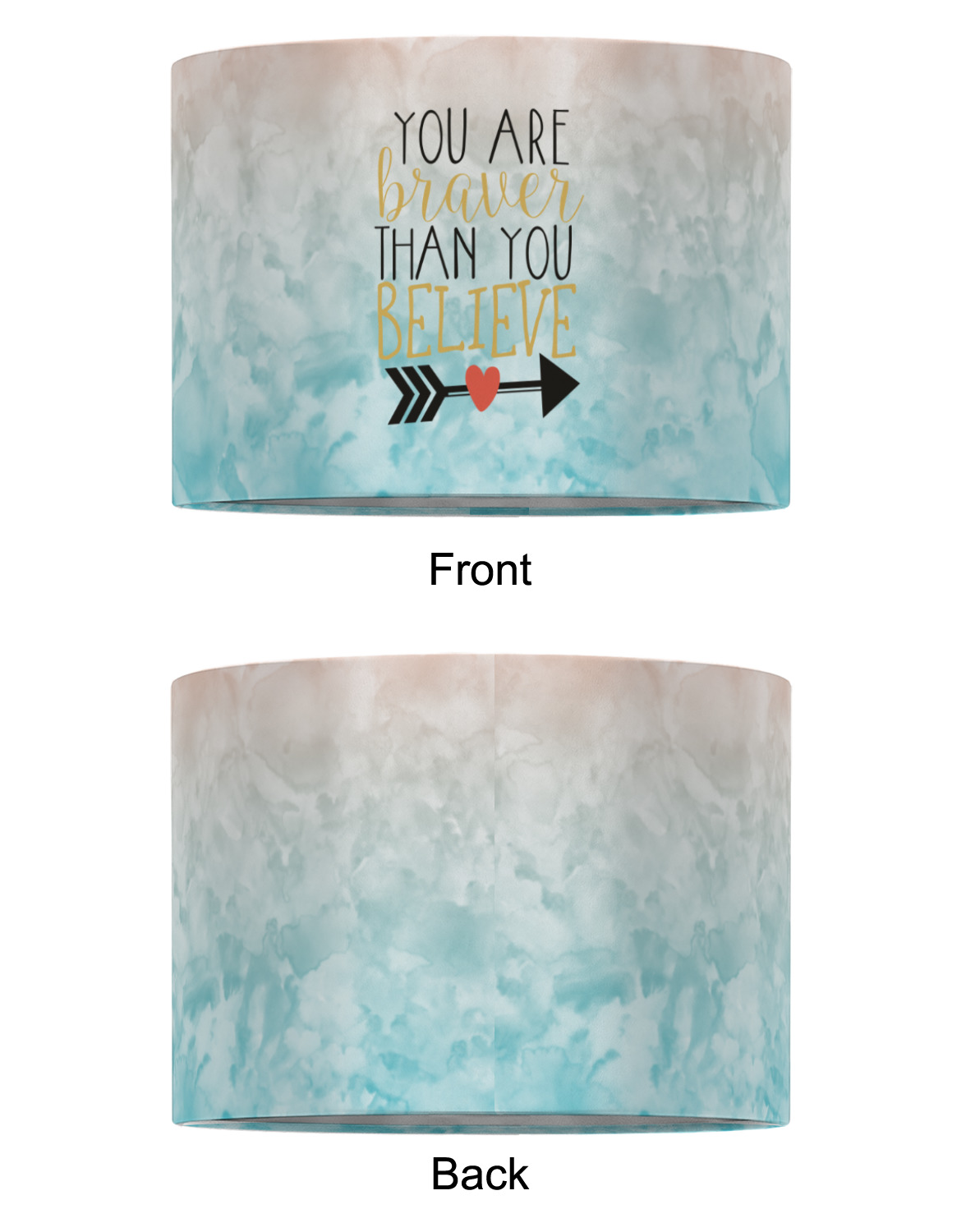 This design features one of our many inspirational quotes. This quote in particular reminds you that "you are braver than you believe." This uplifting quote has beatuiful and playful fonts to create it. An arrow sits below the quote to symbolize the bravery of the heart. The background is a lovely hombre watercolor pattern of teal/turquoise and peach. The calming colors make for a lovely inspirational design.