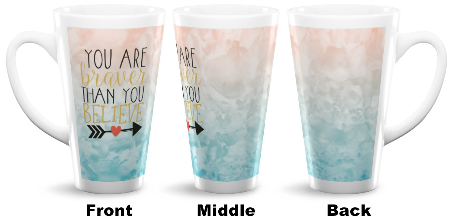 Choose from one of our two ceramic latte mug sizes. Our 12oz latte cups are great for a few shots of espresso or some tea before bed. The 16oz mug is a tall latte mug perfect to hold iced coffee or give you extra room to sip your favorite drink. We print your design with a glossy finish wrapping around the outside of the ceramic mug, so make sure your design is displayed to your ideal vision!