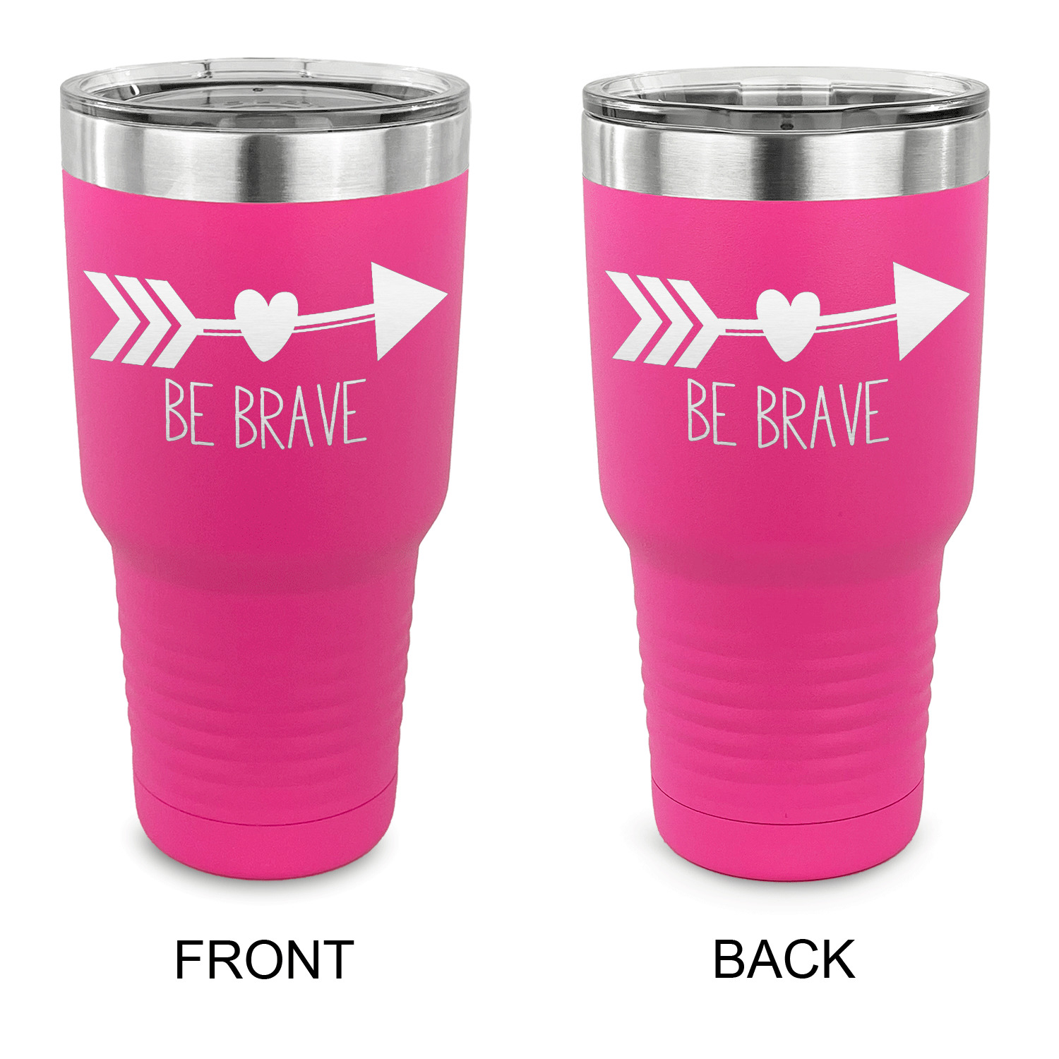 With the 5 colors - Black, Navy, Red, Pink and Coral, you are sure to find a cup to fit your personality. You can chose to engrave on the front or the front and back of the cup. Use our design studio to design your own cup and we laser engrave it for you.