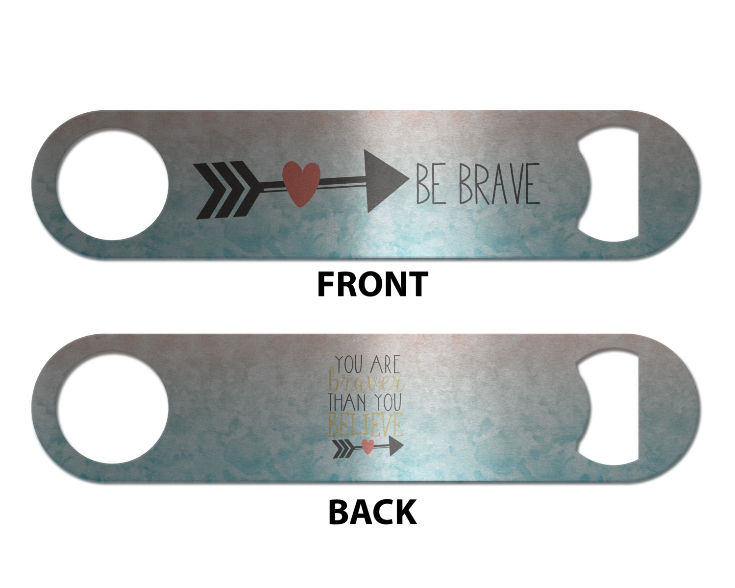 Made from stainless steel, these beer bottle openers are 7 by 1.625 inches, giving you plenty of leverage when trying to open a stubborn bottle. On one end of this personalized bottle opener, you'll find a circular hole for you to hang and display your opener. On the opposite end, you'll find the tool used for opening bottles. This opener in particular has the same structure and style as professional bartender bottle openers. Your customization is sublimated onto both the back and front, and both sides can be customized individually. Choose from one of our two base colors - white or silver.