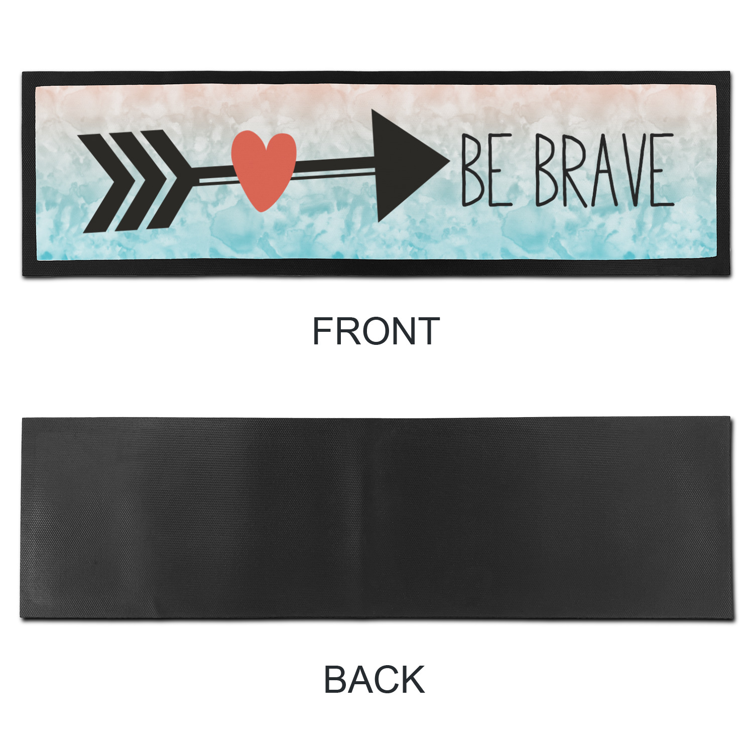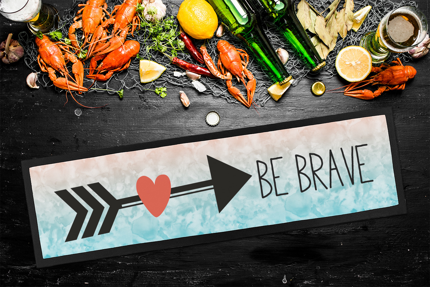 This design features one of our many inspirational quotes. This quote in particular reminds you that "you are braver than you believe." This uplifting quote has beatuiful and playful fonts to create it. An arrow sits below the quote to symbolize the bravery of the heart. The background is a lovely hombre watercolor pattern of teal/turquoise and peach. The calming colors make for a lovely inspirational design.