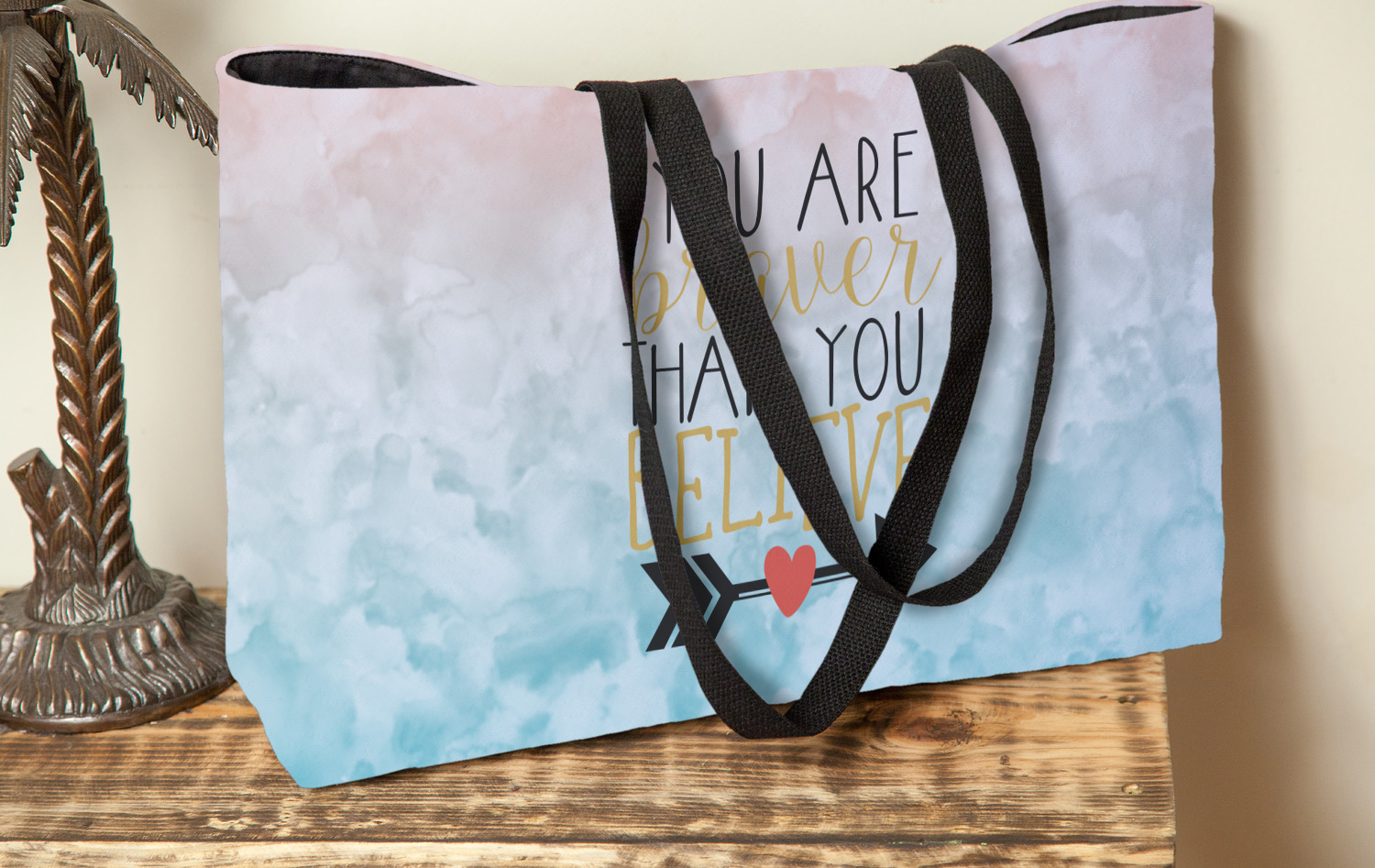You can design the totes with a design on the front and another one on the back. The two designs can be identical or completely different. The choice is yours.