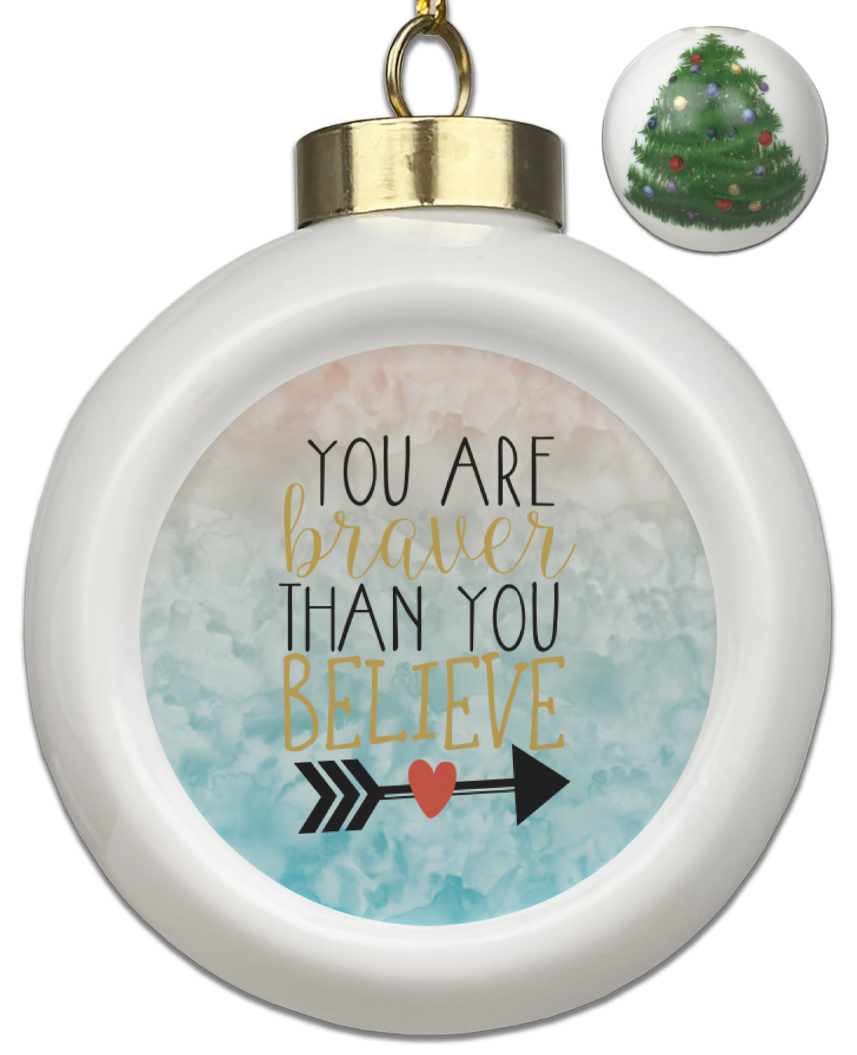 Our Christmas ornaments are a unique ceramic ball shape with a twist as it has a flat face to display your custom design! Select from one of our two design types - Christmas Tree or Poinsettia Garland - to adorn the curved back of your personal design. Each ornament measures 3H x 2.5W x 2D accompanied with a gold string accent for finishing touches to hang on your beautiful Christmas tree!