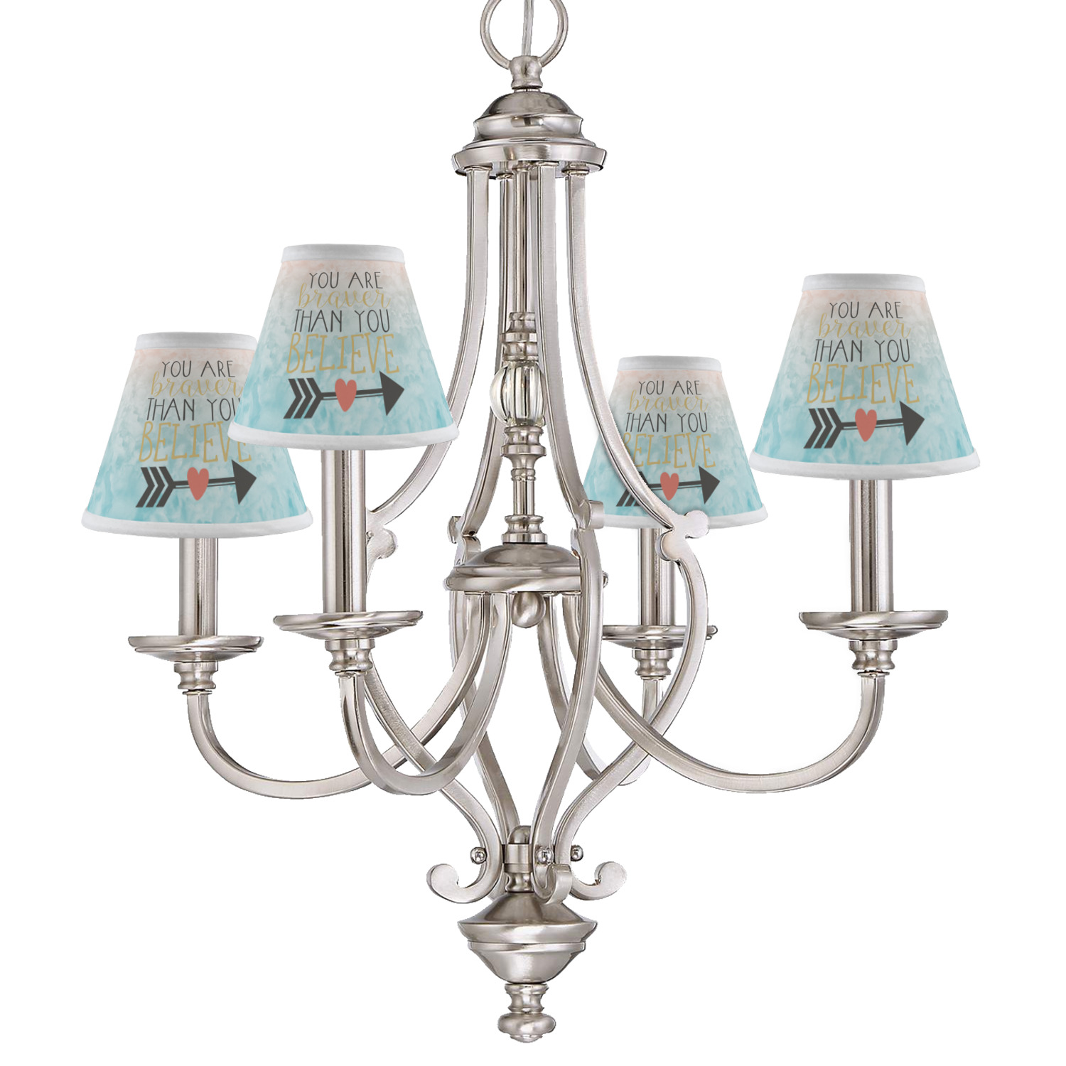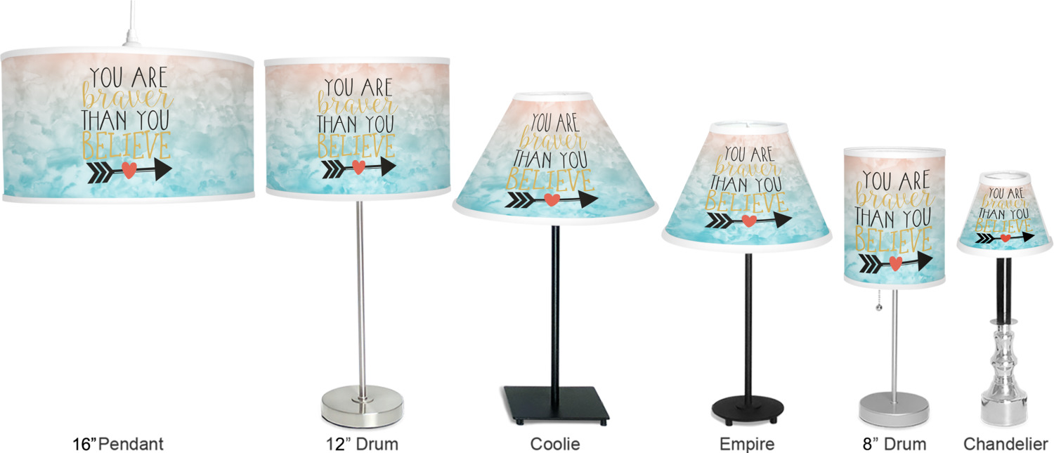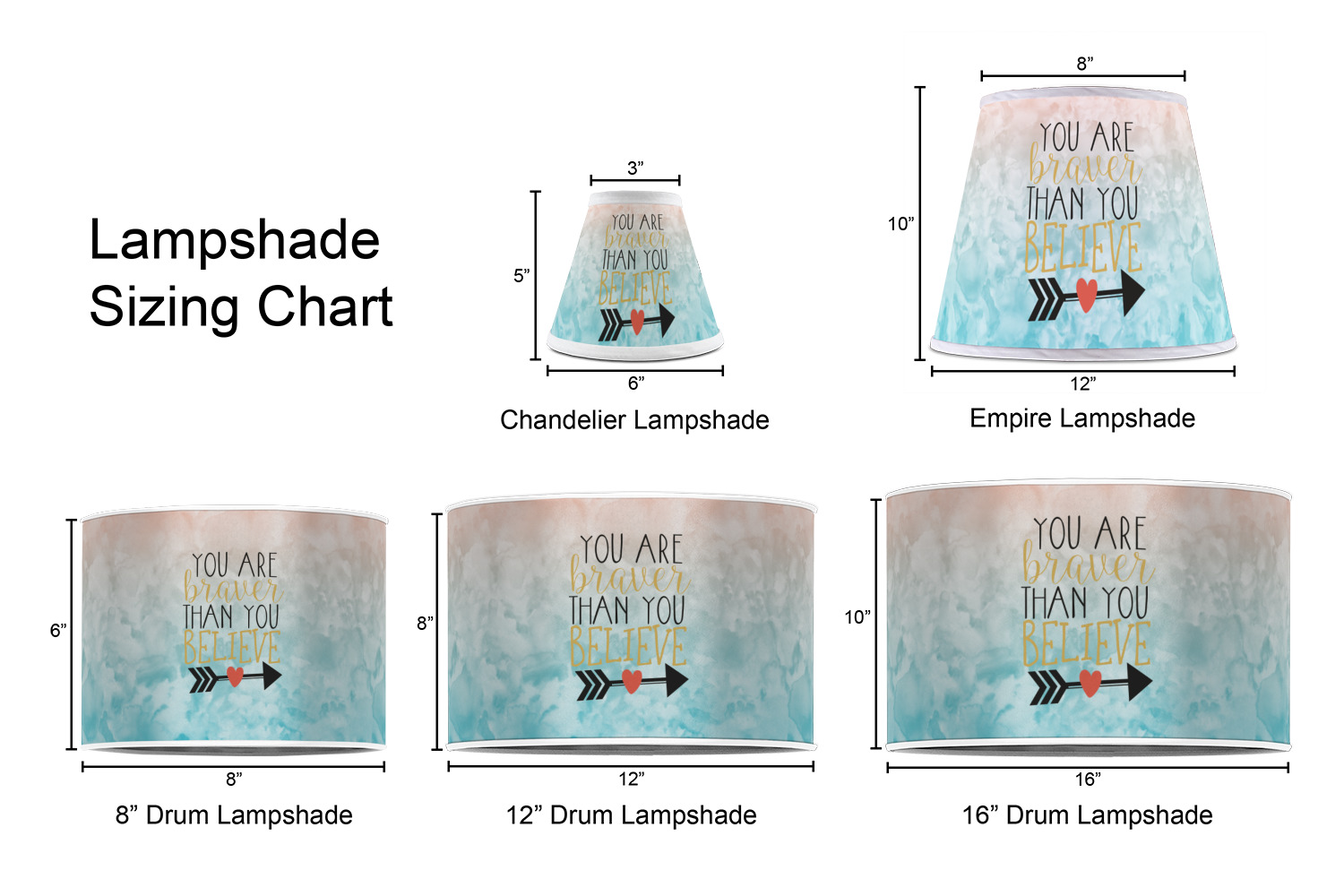 This design features one of our many inspirational quotes. This quote in particular reminds you that "you are braver than you believe." This uplifting quote has beatuiful and playful fonts to create it. An arrow sits below the quote to symbolize the bravery of the heart. The background is a lovely hombre watercolor pattern of teal/turquoise and peach. The calming colors make for a lovely inspirational design.
