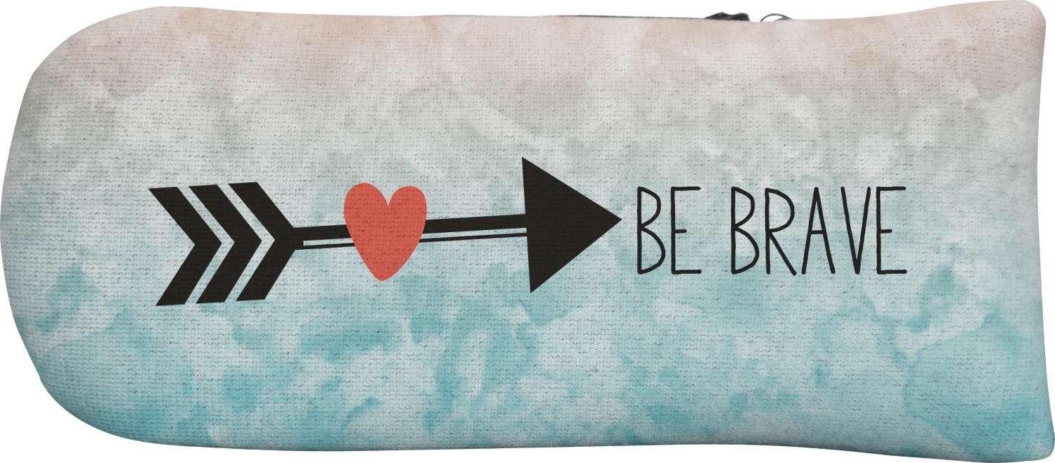 This design features one of our many inspirational quotes. This quote in particular reminds you that "you are braver than you believe." This uplifting quote has beatuiful and playful fonts to create it. An arrow sits below the quote to symbolize the bravery of the heart. The background is a lovely hombre watercolor pattern of teal/turquoise and peach. The calming colors make for a lovely inspirational design.