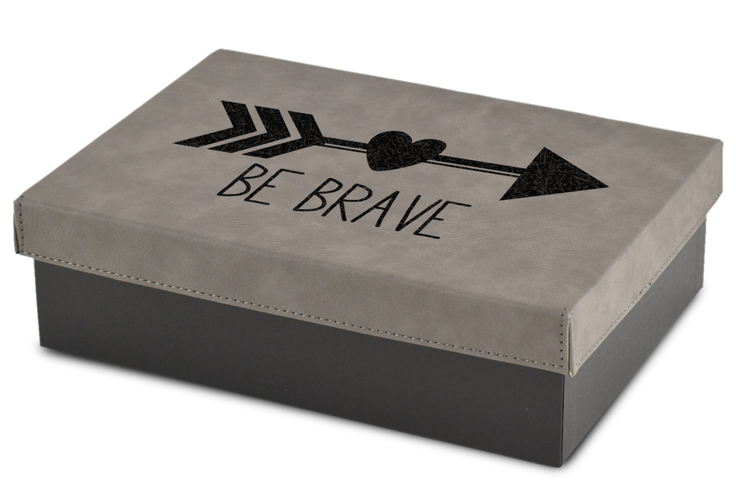 These gift boxes are available in 3 different sizes to accommodate various sized gifts. Available in gray as a neutral color for any occasion as well as to showcase your design boldly. Engraved with a laser this high quality paper board and faux leather gift box is unique and makes any gift stand out.