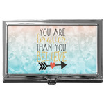 This design features one of our many inspirational quotes. This quote in particular reminds you that "you are braver than you believe." This uplifting quote has beatuiful and playful fonts to create it. An arrow sits below the quote to symbolize the bravery of the heart. The background is a lovely hombre watercolor pattern of teal/turquoise and peach. The calming colors make for a lovely inspirational design.