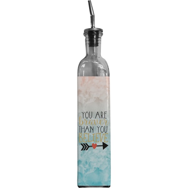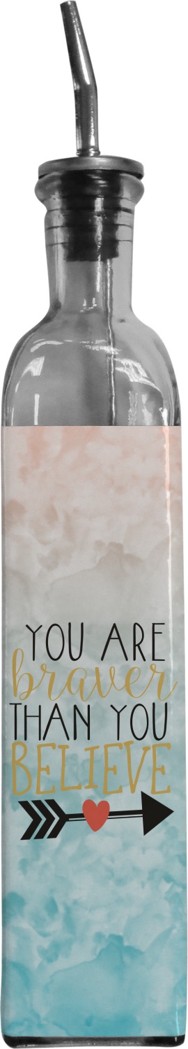 Made from recycled glass in Spain, these oil bottles have a classic, delicate look, and are accompanied by a metal spout for controlled pouring. Each bottle holds approximately 13 ounces and measures at 12 by 2 inches. We customize your glass oil bottle by applying your personalized design on the front and sides, using an adhesive. Our customizable stickers are made from high quality, gloss vinyl and are printed with waterproof, eco-solvent inks. These pieces are machine cut for accuracy and symmetry. The result is a robust, waterproof, adhesive decal that will not fade or deteriorate with time.
