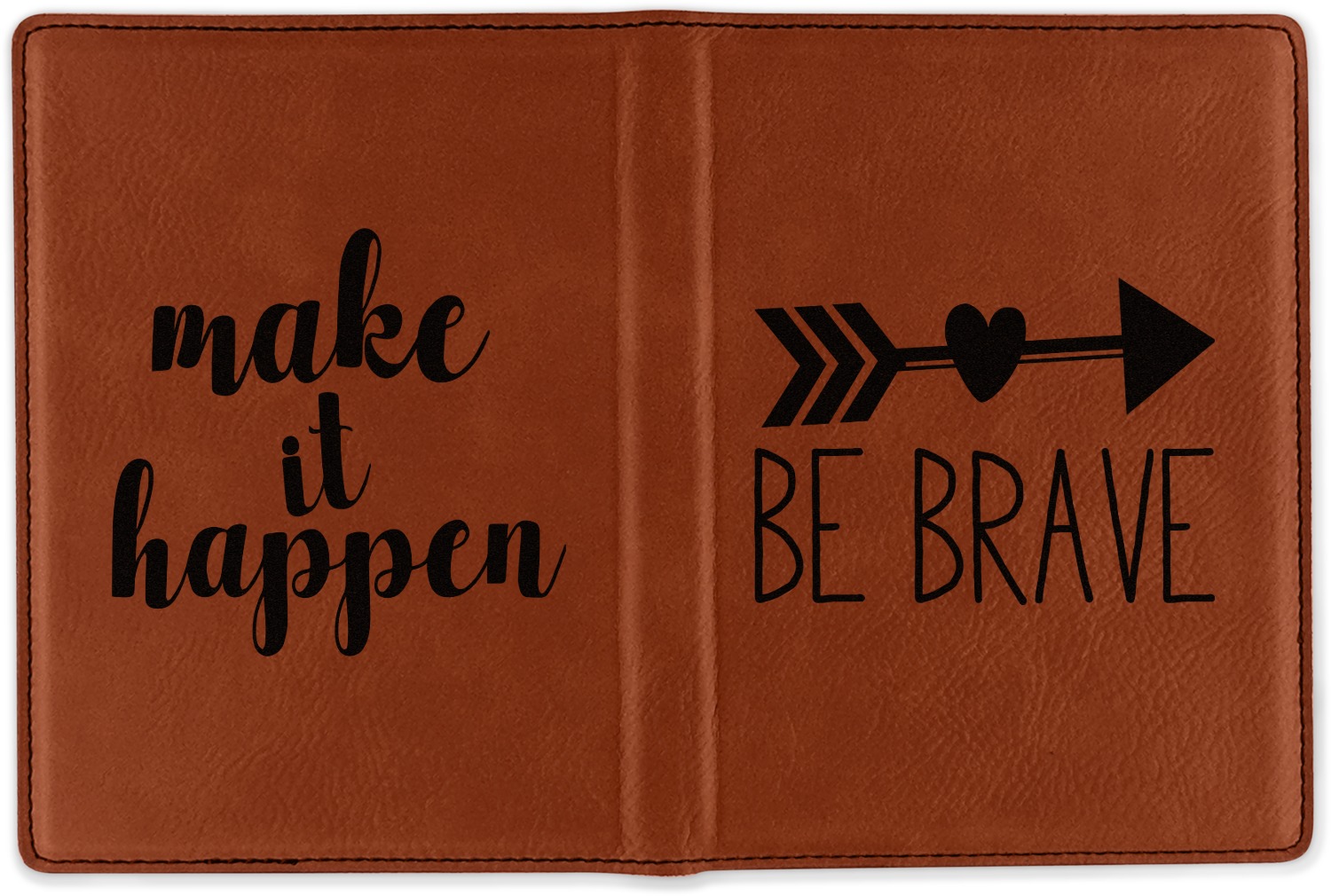 Although they are faux leather, these passport holders feel great in your hand. They are laser engraved either just on the front or the front and back. The image that is engraved onto your passport holder will be shades of black.