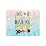 This design features one of our many inspirational quotes. This quote in particular reminds you that "you are braver than you believe." This uplifting quote has beatuiful and playful fonts to create it. An arrow sits below the quote to symbolize the bravery of the heart. The background is a lovely hombre watercolor pattern of teal/turquoise and peach. The calming colors make for a lovely inspirational design.