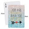 The customization / personalization is printed on the back side. The playing cards have a low gloss coating on both sides. The cards are packaged in a clear plastic box.