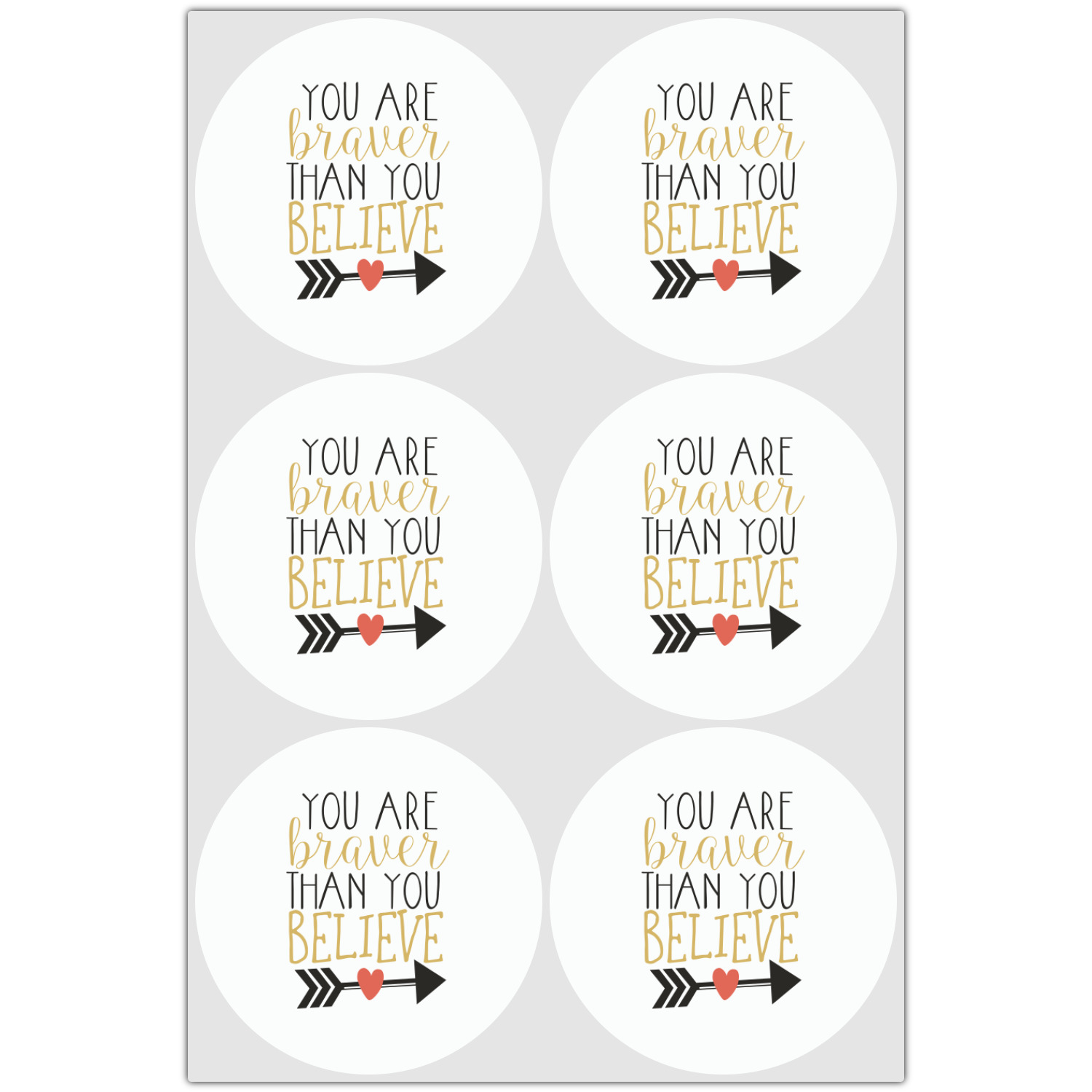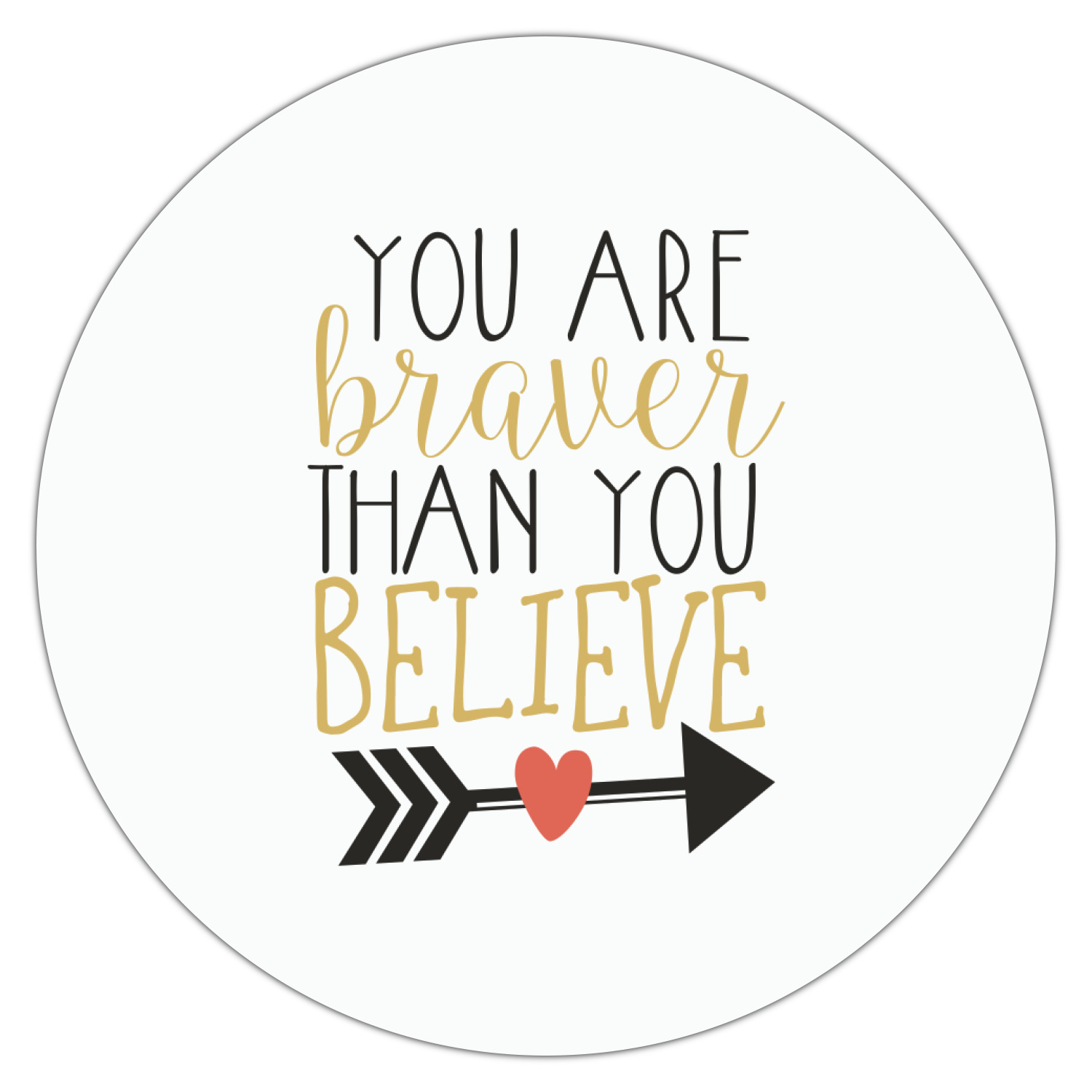 This design features one of our many inspirational quotes. This quote in particular reminds you that "you are braver than you believe." This uplifting quote has beatuiful and playful fonts to create it. An arrow sits below the quote to symbolize the bravery of the heart. The background is a lovely hombre watercolor pattern of teal/turquoise and peach. The calming colors make for a lovely inspirational design.