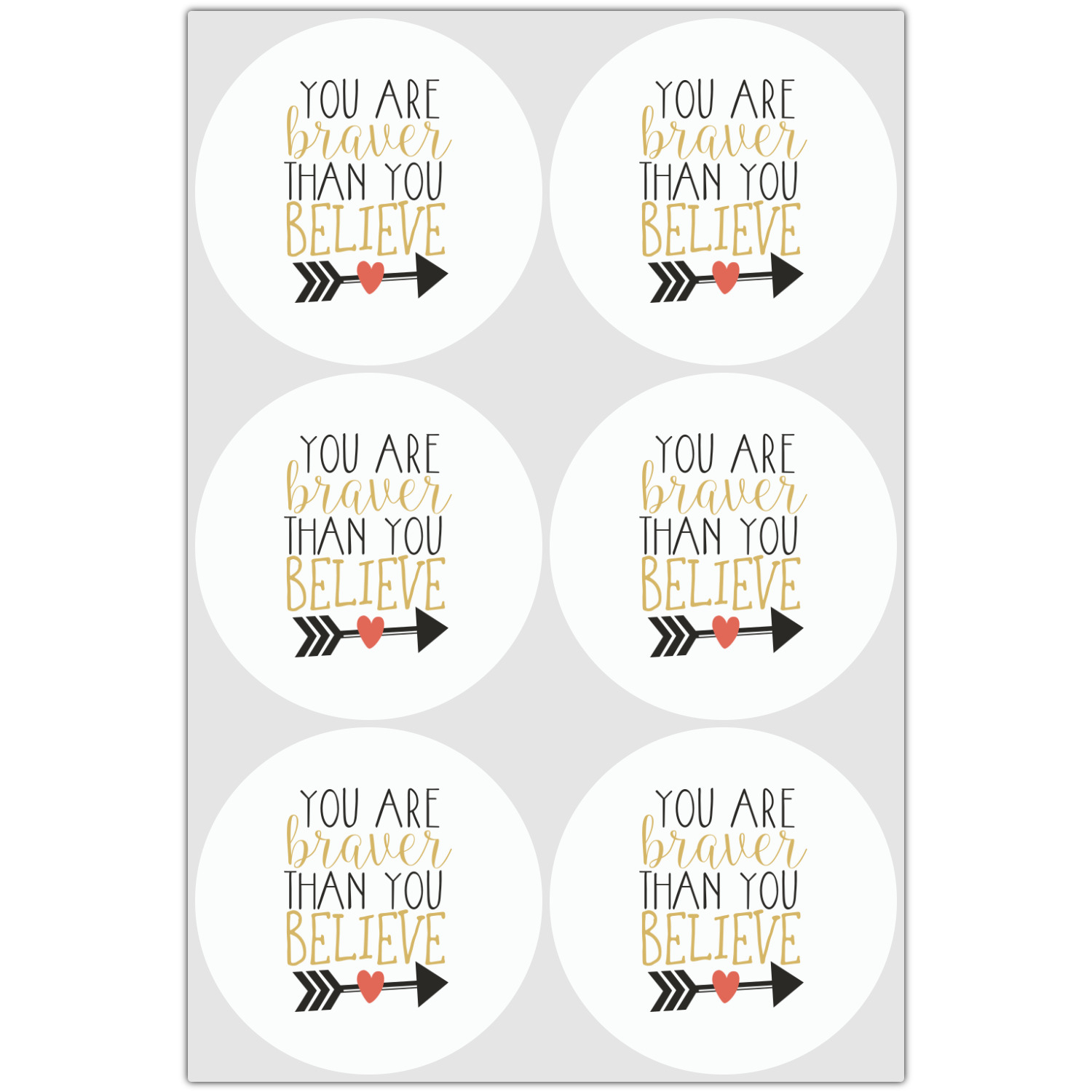This design features one of our many inspirational quotes. This quote in particular reminds you that "you are braver than you believe." This uplifting quote has beatuiful and playful fonts to create it. An arrow sits below the quote to symbolize the bravery of the heart. The background is a lovely hombre watercolor pattern of teal/turquoise and peach. The calming colors make for a lovely inspirational design.