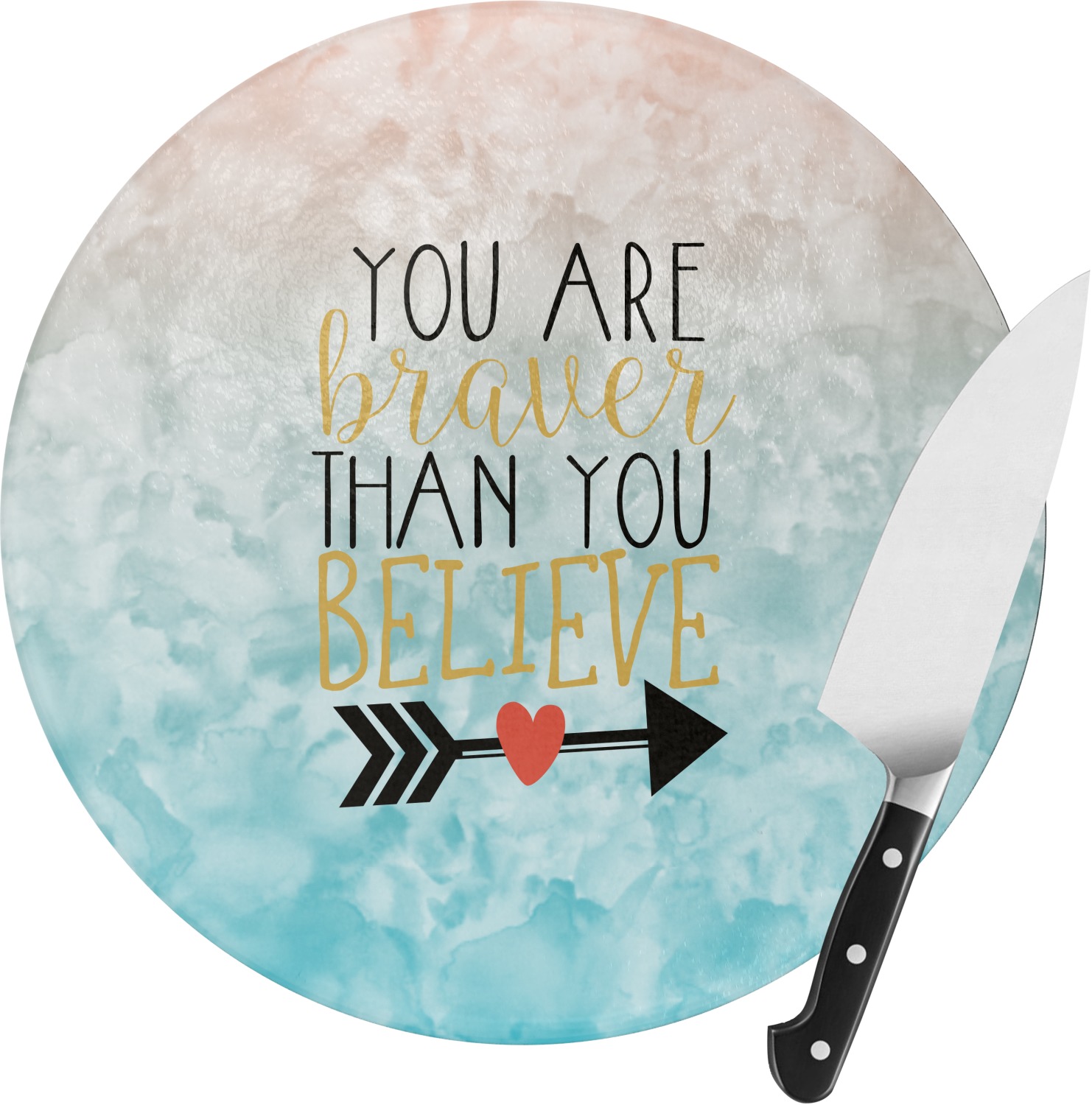 Prep your meals with passion when you use our personalized round cutting boards. The personalization options we offer really make them one of a kind and they are available in delightful colors and designs that might just keep you smiling instead off crying when you're cutting onions!!