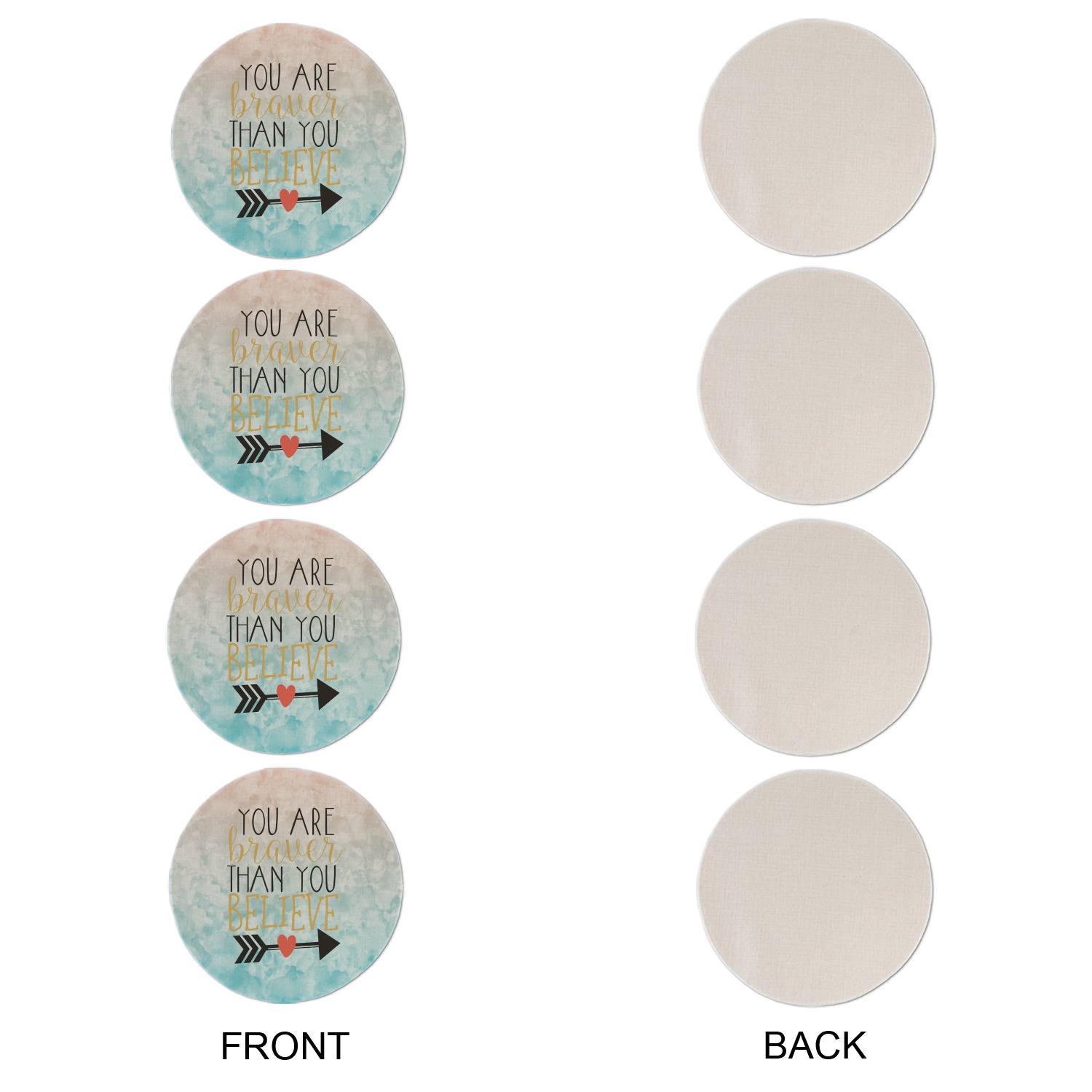 This design features one of our many inspirational quotes. This quote in particular reminds you that "you are braver than you believe." This uplifting quote has beatuiful and playful fonts to create it. An arrow sits below the quote to symbolize the bravery of the heart. The background is a lovely hombre watercolor pattern of teal/turquoise and peach. The calming colors make for a lovely inspirational design.