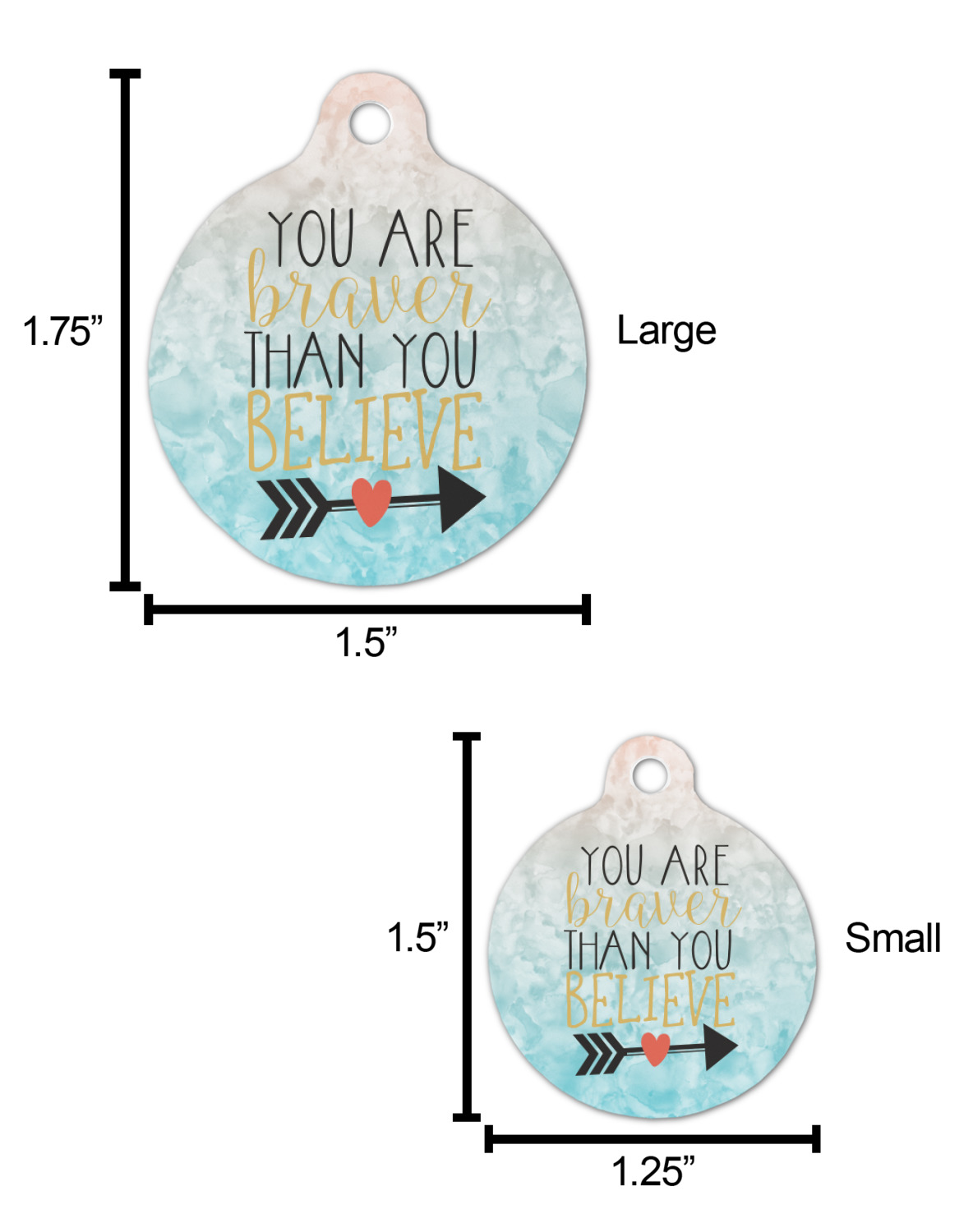 Go ahead; skip the monotony of plain pet ID tags with your very own, customized & personalized, round pet tag! This pet ID tag, fitting for both cats and dogs, will catch the eye of any onlooker (humans, canines, and felines, alike!) and accentuate your pet's individual personality.