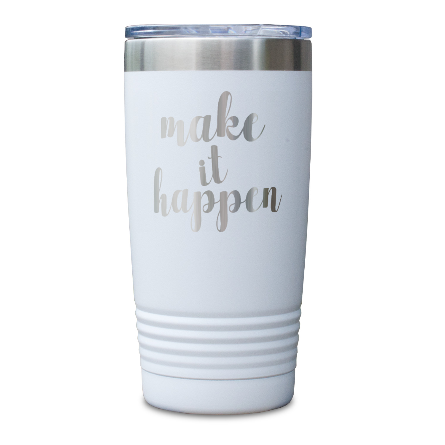 Available in 8 unique colors, these cups are crafted from 18/8 stainless steel and powder coated for their durable finish. With the 8 colors being Black, Pink, Red, Teal, White, Grey, Royal Blue, and Olive Green, you are sure to find a cup to fit your personality. You can chose to engrave on the front or the front and back of the cup. Use our design studio to design your own cup and we laser engrave it for you.