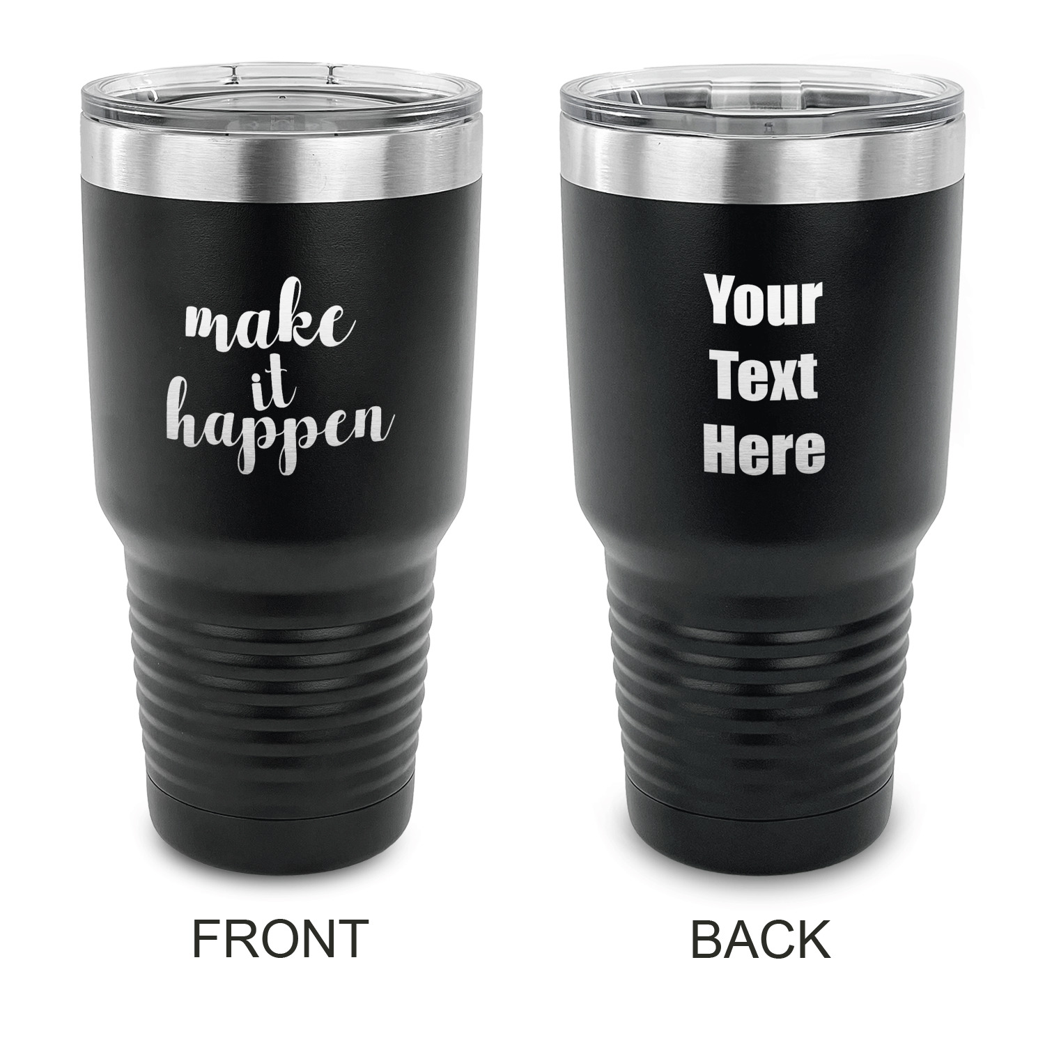 With our personalized 30 oz double wall stainless steel tumblers, you'll never have to settle for a plain, boring tumbler again! These tumblers will be a wonderful addition to your drinkware collection and will make those long commutes much brighter. Personalize one for yourself, or give these personalized tumblers as a gift to relatives, friends, or coworkers!