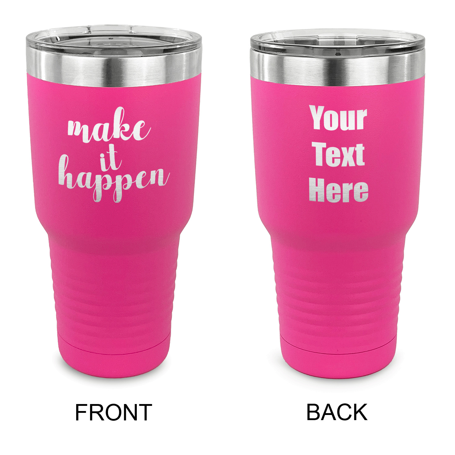 With the 5 colors - Black, Navy, Red, Pink and Coral, you are sure to find a cup to fit your personality. You can chose to engrave on the front or the front and back of the cup. Use our design studio to design your own cup and we laser engrave it for you.