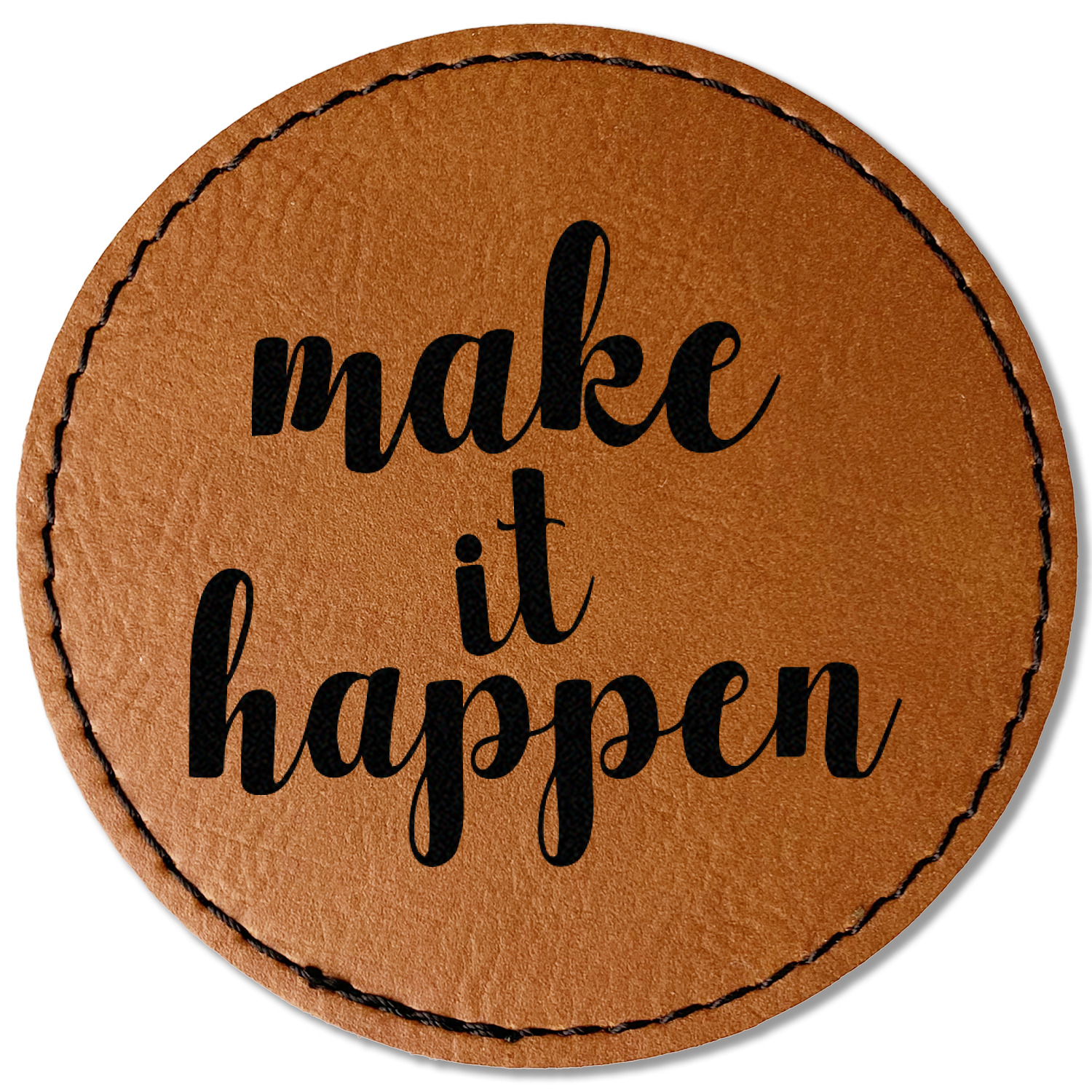 Our leather patches come in 4 different shapes - Square (3" x 3"), Round (3" x 3"), Oval (3.5" x 2.5"), Rectangle (3.5" x 2.5") and a beautiful rich brown rawhide or cognac color.