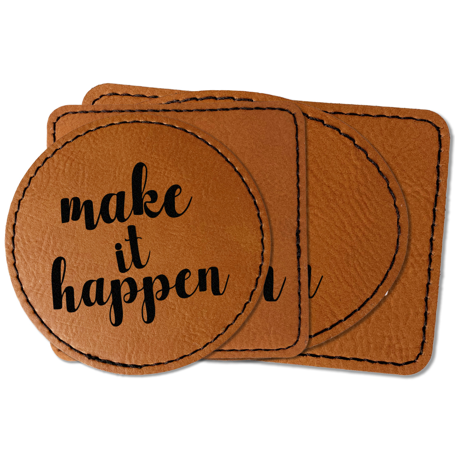 Our leather patches come in 4 different shapes - Square (3" x 3"), Round (3" x 3"), Oval (3.5" x 2.5"), Rectangle (3.5" x 2.5") and a beautiful rich brown rawhide or cognac color.