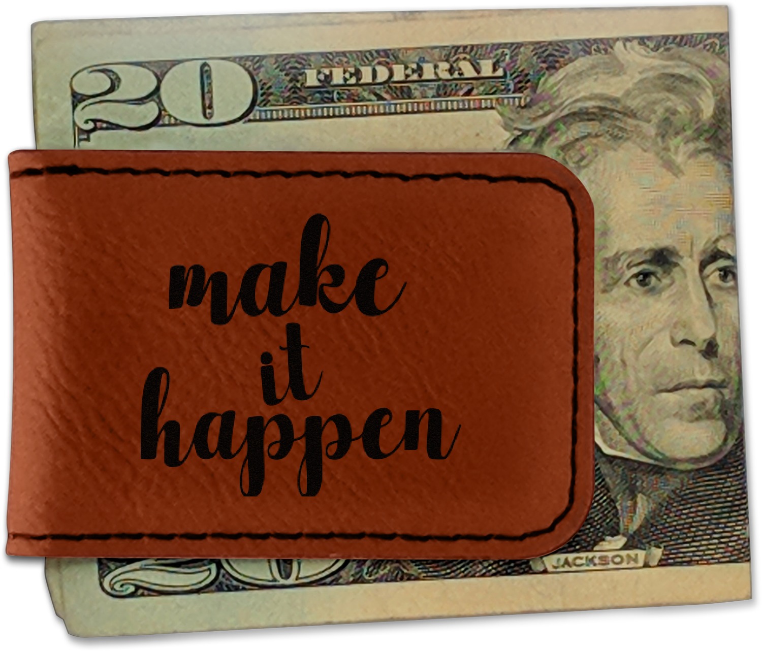 Your money clip will be laser engraved so that the design you choose will come out black. Find a fun graphic, monogram, or font to use to personalize your money clip either on just the front or the front and the back.