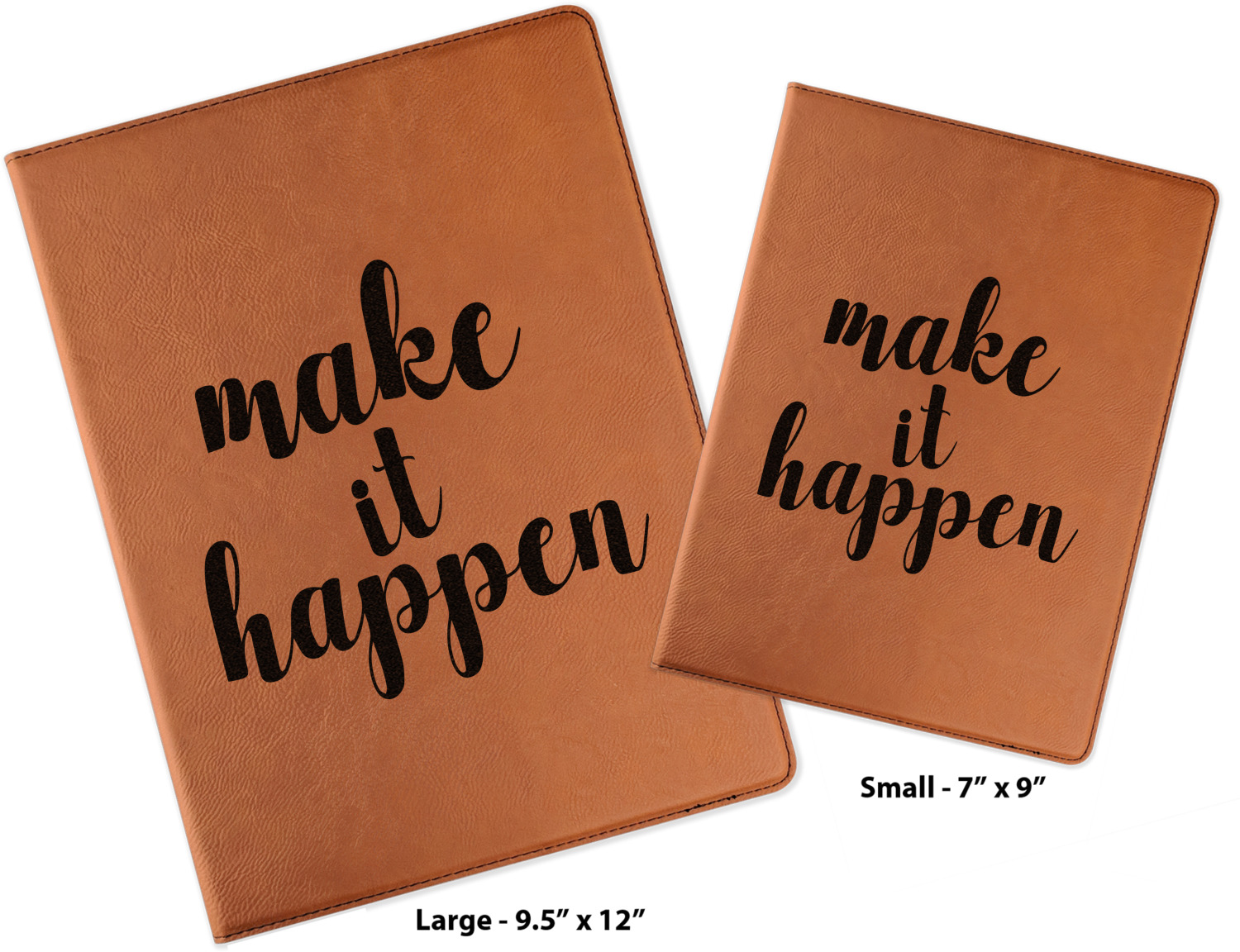 Go into our design center and start designing what will be laser engraved into your portfolio. Choose from our monograms, fonts, or quotes to find something that will fit your personality!