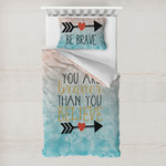 This design features one of our many inspirational quotes. This quote in particular reminds you that "you are braver than you believe." This uplifting quote has beatuiful and playful fonts to create it. An arrow sits below the quote to symbolize the bravery of the heart. The background is a lovely hombre watercolor pattern of teal/turquoise and peach. The calming colors make for a lovely inspirational design.