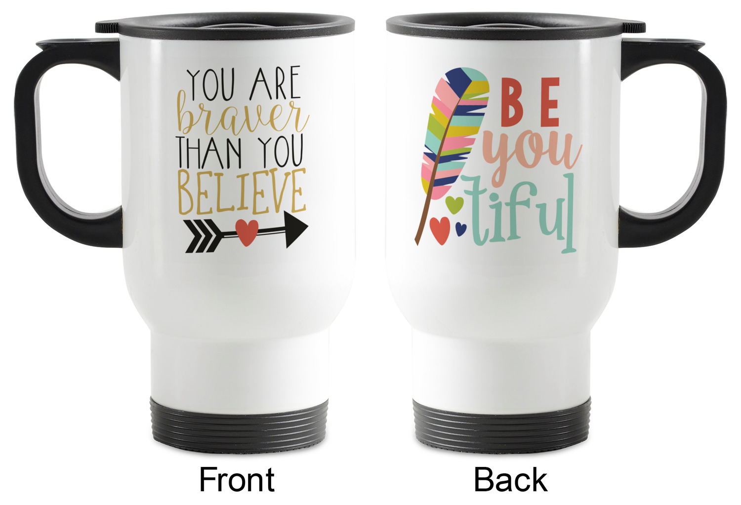 This stainless steel travel mug is a great way to take your favorite beverage with you when you're on the go!