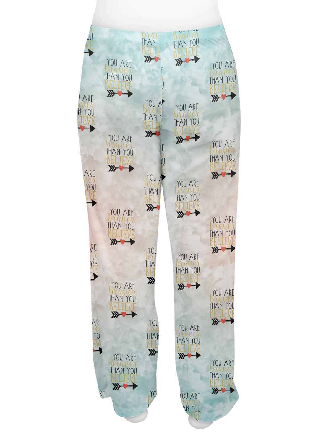 This design features one of our many inspirational quotes. This quote in particular reminds you that "you are braver than you believe." This uplifting quote has beatuiful and playful fonts to create it. An arrow sits below the quote to symbolize the bravery of the heart. The background is a lovely hombre watercolor pattern of teal/turquoise and peach. The calming colors make for a lovely inspirational design.